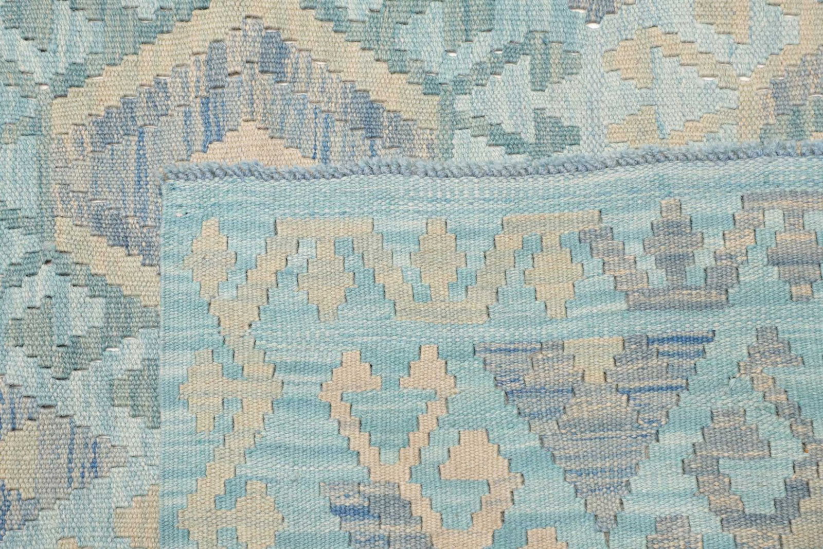 Die handgewebte Qualität und der flache Flor von etwa 5mm machen diesen Teppich besonders pflegeleicht und langlebig. Kelim Teppiche sind in der Regel beidseitig verwendbar, was ihre Funktionalität zusätzlich erhöht. Die Verwendung von hochwertiger Schurwolle sorgt für eine angenehme Haptik und eine natürliche Regulierung der Luftfeuchtigkeit im Raum, während die Baumwollkette für Stabilität und Langlebigkeit sorgt.