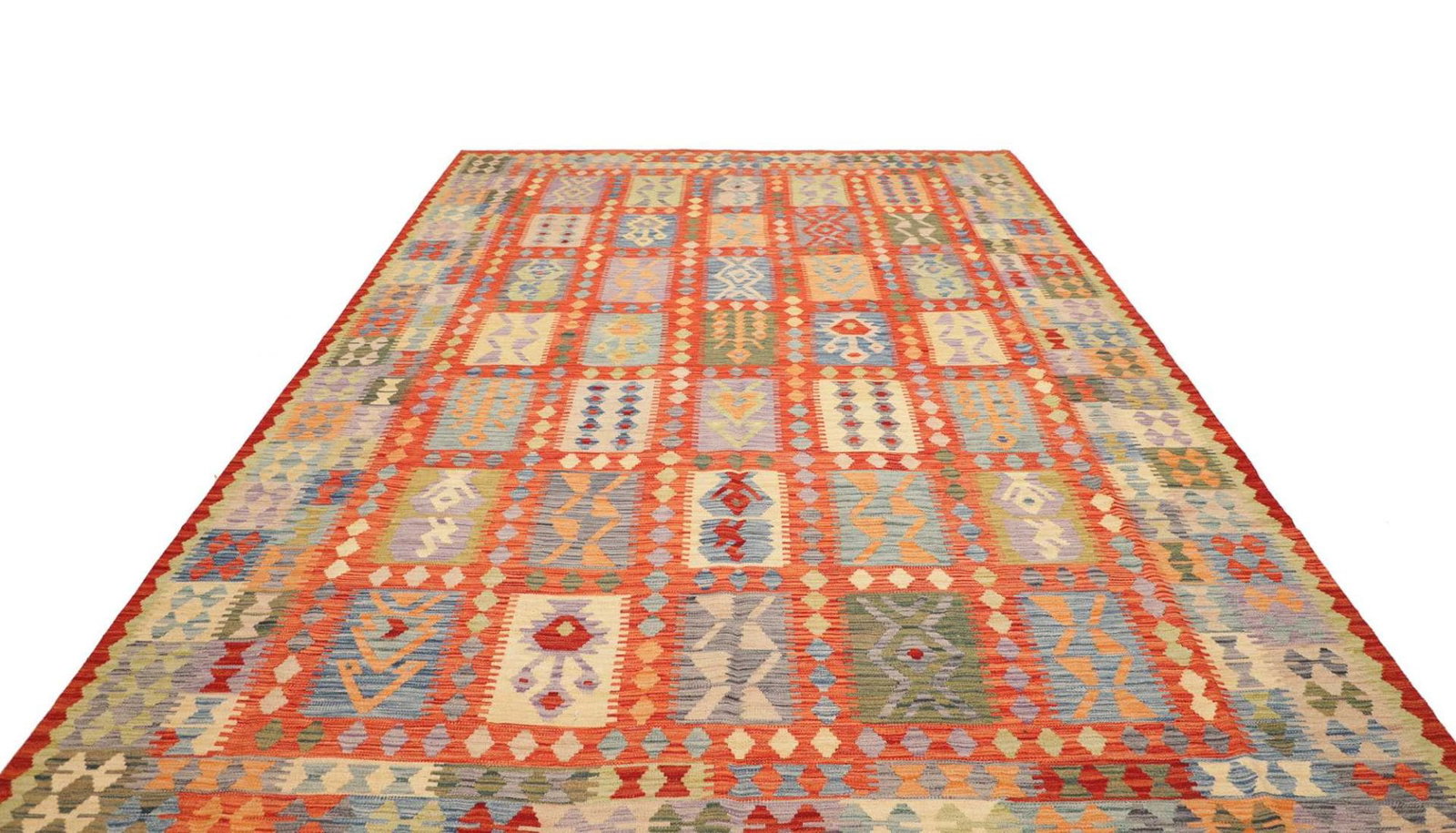 1468$Ursprünglicher Preis war: 1468$1147$Aktueller Preis ist: 1147$Handgewebter Kelim | Knotendichte: ca. 200.000 / m² | Material: Flor: 100% Schurwolle, Kette: 100% Baumwolle | Größe: 253 x 352 cm | Herkunft: Pakistan