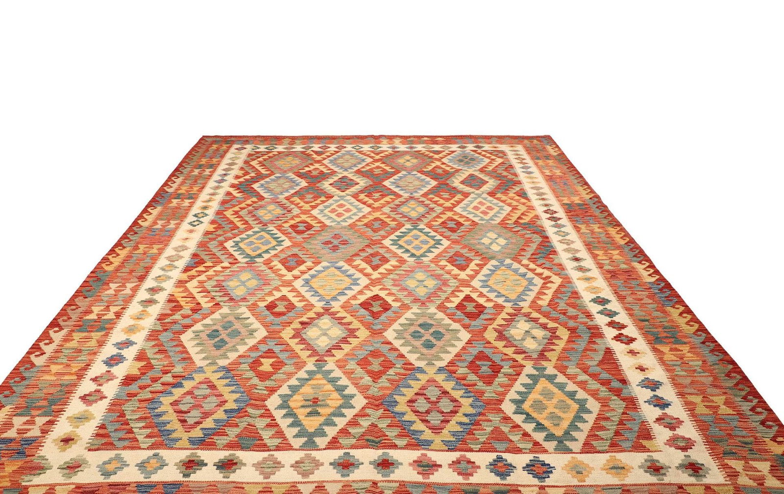 Kelim Teppich | Knotendichte: ca. 200.000 Knoten/m² | Material: 100% Schurwolle (Flor), 100% Baumwolle (Kette) | Größe: 264 x 341 cm | Höhe: ca. 5 mm | Handgewebte Qualität aus Pakistan | Ideal für rustikales und modernes Wohnen