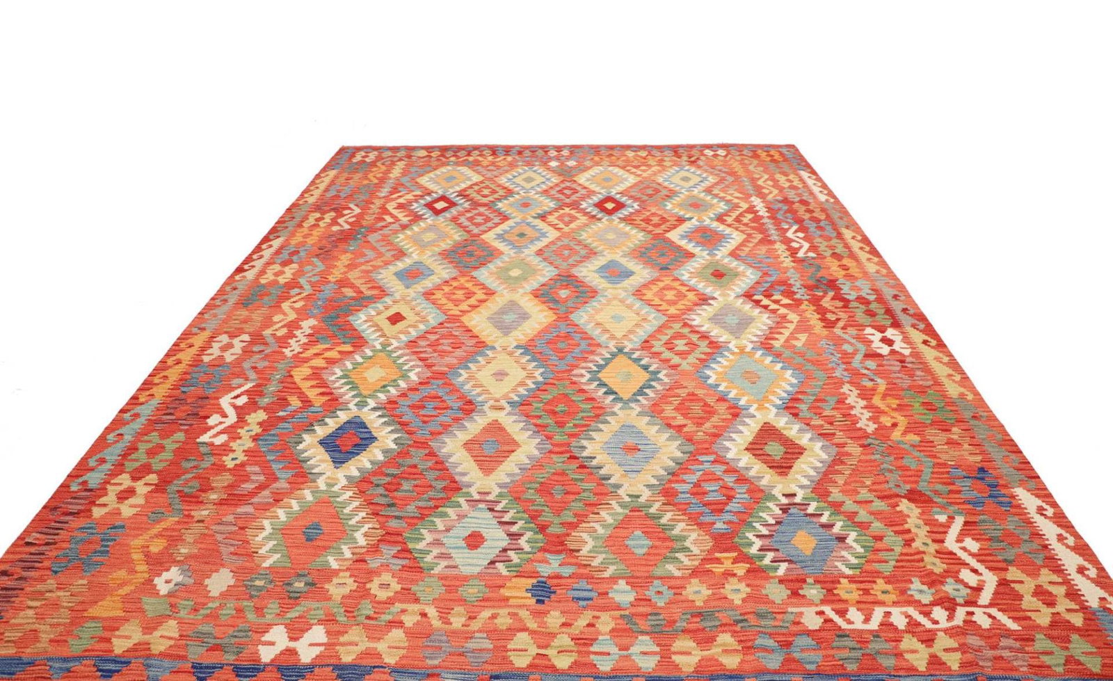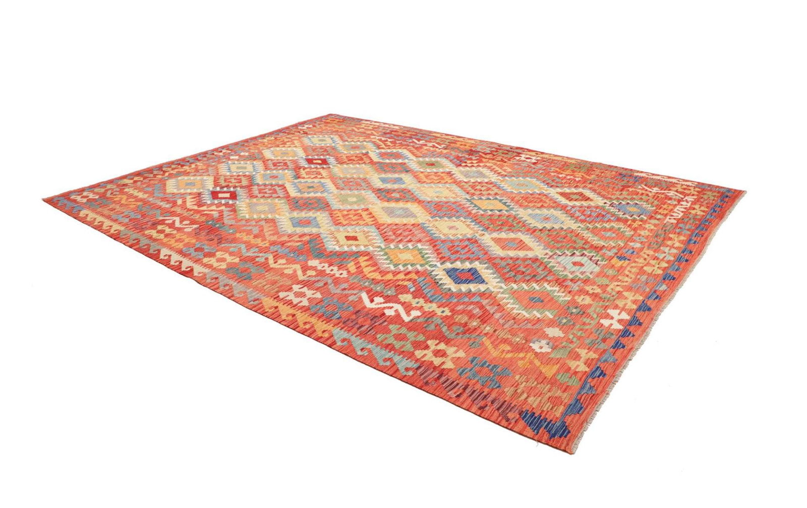 Handgewebter Kelim | Knotendichte: ca. 200.000 / m² | Material: Flor: 100% Schurwolle, Kette: 100% Baumwolle | Größe: 266 x 344 cm | Herkunft: Pakistan