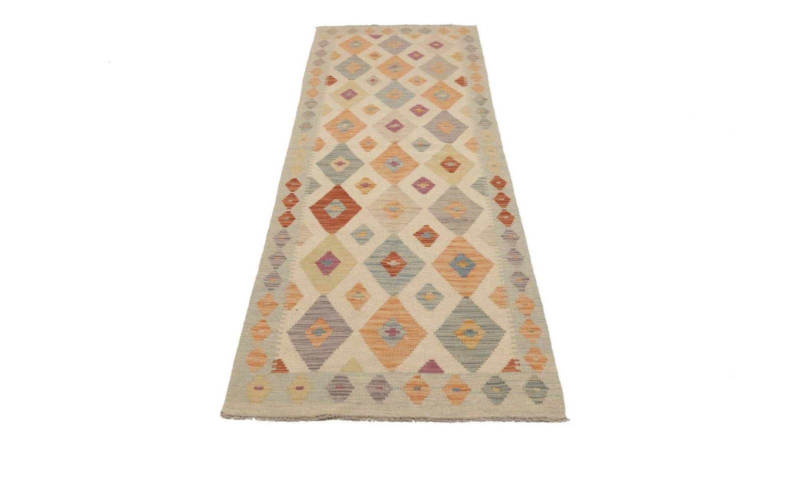 (Verkauft) Orientteppich Kelim 85 x 247 cm aus Schurwolle, handgewebt