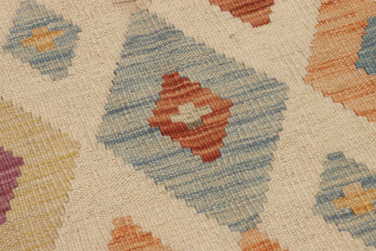 Der handgewebte Kelim ist vielseitig einsetzbar und kann sowohl im Wohnbereich, als auch im Büro eine stilvolle Atmosphäre schaffen. Er eignet sich für intensiv genutzte Räume, da die Schurwolle strapazierfähig und schmutzabweisend ist.