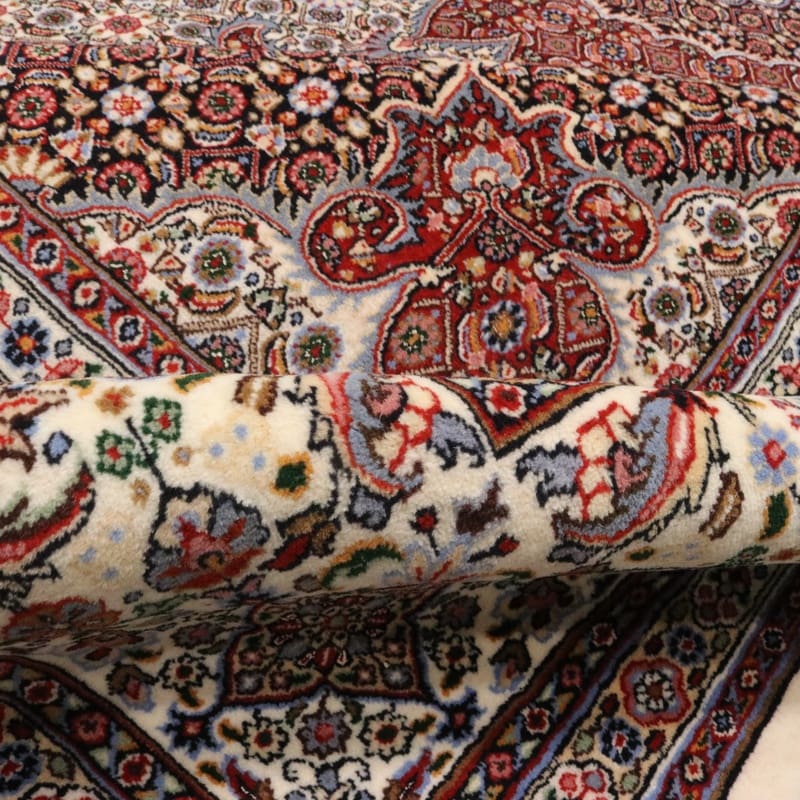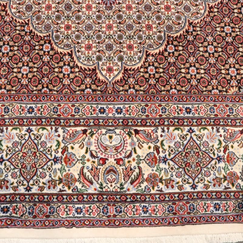 Der Ursprung dieses Teppichs liegt in einem der traditionsreichsten Teppichregionen des Orients. Die Moud-Region, insbesondere bekannt für ihre exquisiten Teppiche, ist ein Beispiel für jahrhundertealte Handwerkskunst, die von Generation zu Generation weitergegeben wird. Die Teppichweber in dieser Region sind berühmt für ihre Liebe zum Detail und ihr tiefes Verständnis für die Materialien, die sie verwenden. Diese Teppiche sind nicht nur Gebrauchsgegenstände, sondern auch Kunstwerke, die Geschichten und Traditionen erzählen.