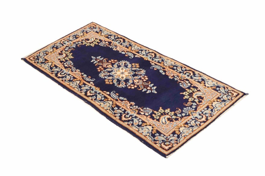 Traditioneller Kerman Teppich | Knotendichte: 160.000 – 200.000 Knoten/m² | Material: Handgesponnene Wolle und Baumwolle | Größe: 159×75 cm | In neuem Zustand | Herkunft: Iran / Persien | Verarbeitung: Handgeknüpft | Farbe: Blau/Türkis | Dicke: ca. 8 mm | Gewicht: ca. 5 kg