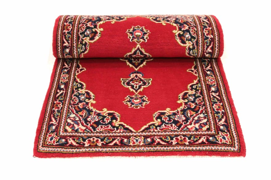 Keshan Teppich | Knotendichte: 200.000 – 250.000 Knoten/m² | Material: Handgesponnene Wolle und Baumwolle | Größe: 131×65 cm | Farbe: Rot/Orange | Zustand: Neu | Herkunft: Iran/Persien | Verarbeitung: Handgeknüpft | Form: Läufer | Dicke: ca. 8 mm | Gewicht: ca. 2 kg