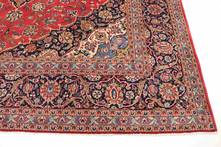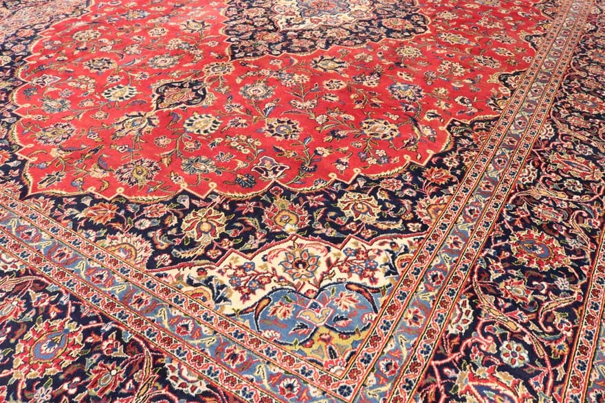 Handgeknüpfter Keshan Teppich | Knotendichte: 200.000 – 250.000 Knoten/m² | Material: Hochwertige Wolle | Größe: 425×304 cm | Farbe: Rot/Orange | Zustand: Neu | Ursprung: Iran / Persien | Dicke: ca. 10 mm | Gewicht: ca. 40 kg | Form: Rechteckig