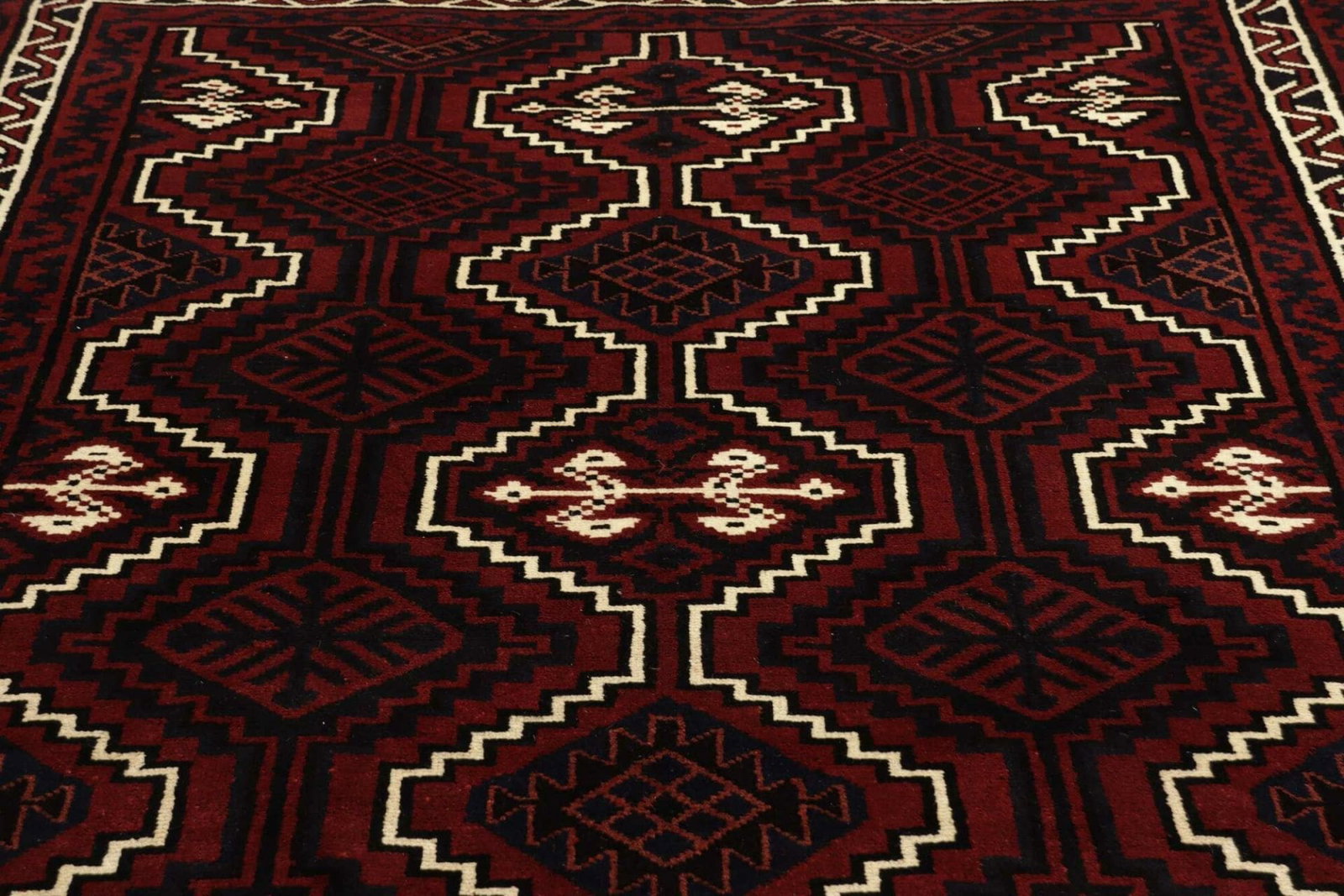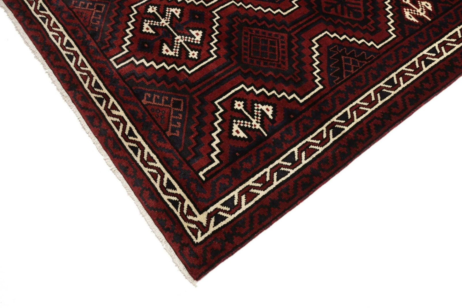 Lori Teppich | Knotendichte: 200.000 Knoten/m² | Material: 100% Schurwolle | Größe: 173 x 262 cm | Herkunft: Iran | Zustand: Handgeknüpft | Muster: Geometrisch in dunklen Blau- oder Rottönen | Höhe: 10-12 mm
