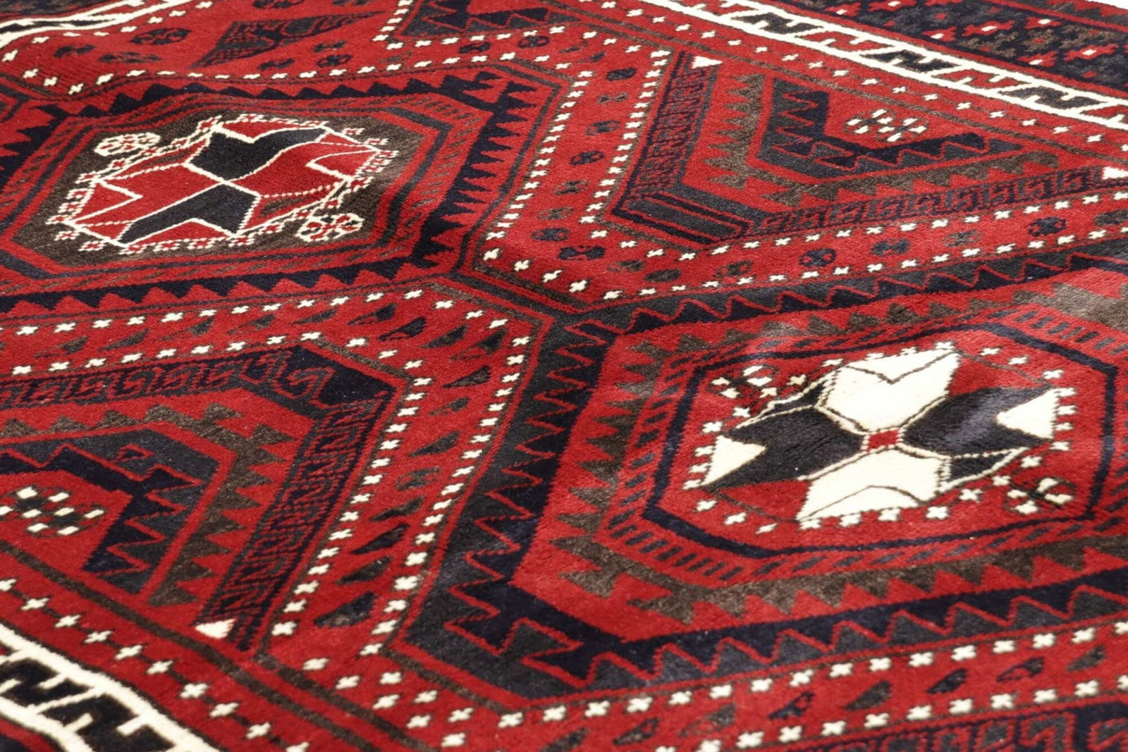 Lori Teppich | Knotendichte: ca. 200.000 Knoten/m² | Material: 100% Schurwolle | Größe: 173 x 265 cm | Herkunft: Iran | Muster: Geometrisch in dunklen Blau- und Rottönen | Zustand: Handgeknüpft, robust und strapazierfähig