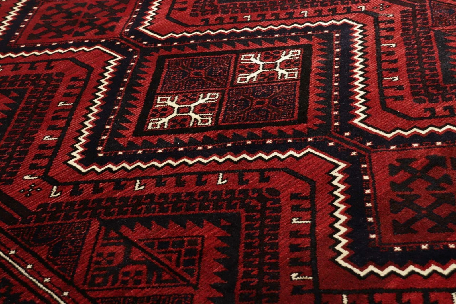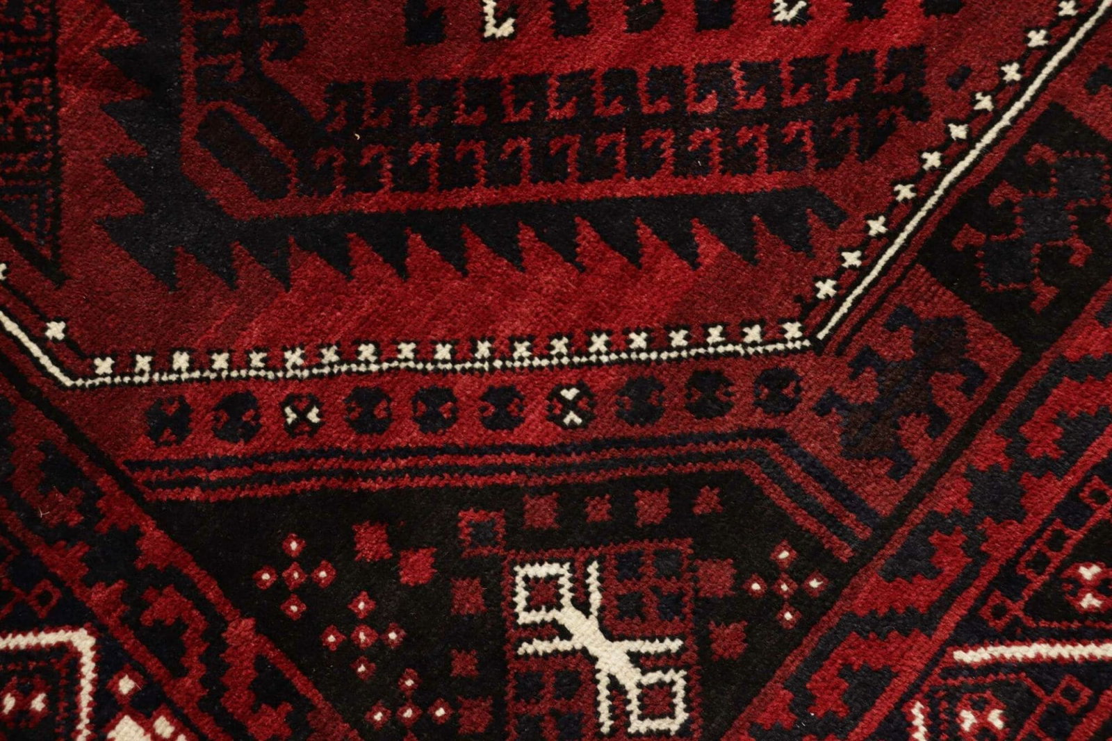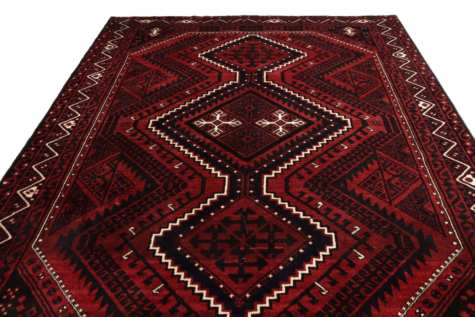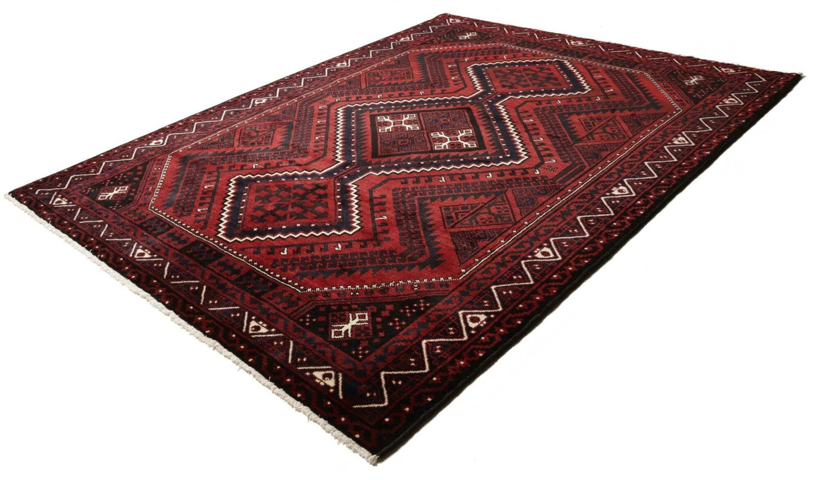 Lori Teppich | Knotendichte: ca. 200.000 Knoten/m² | Material: 100% Schurwolle | Größe: 223 x 300 cm | Herkunft: Iran | Zustand: Handgeknüpft | Muster: Geometrisch in dunklen Blau- und Rottönen | Höhe: ca. 10-12 mm