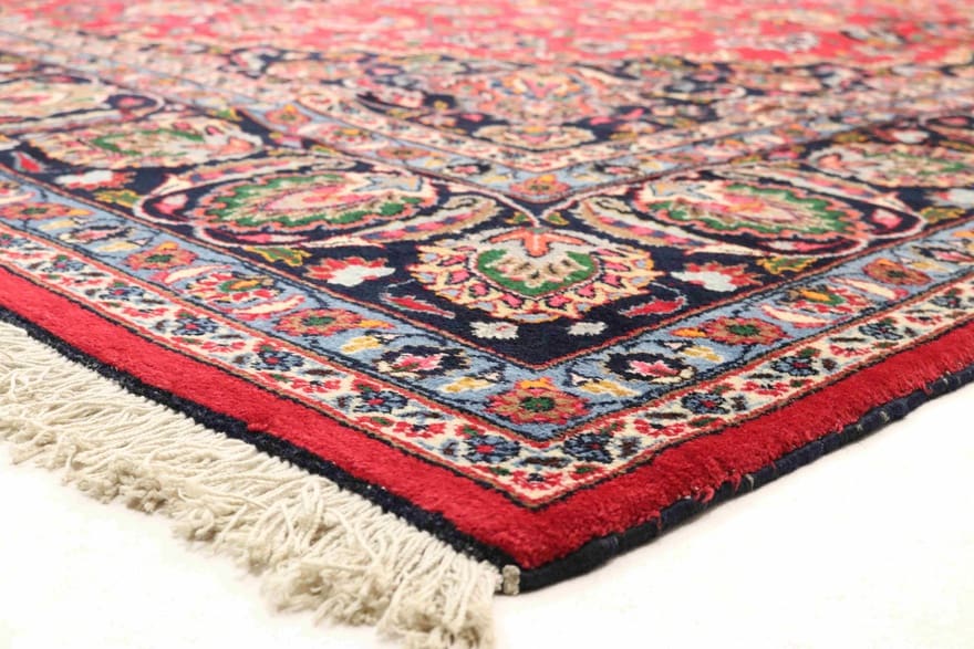Orientteppich Mashhad 398×295 cm, rot-blau, handgeknüpft