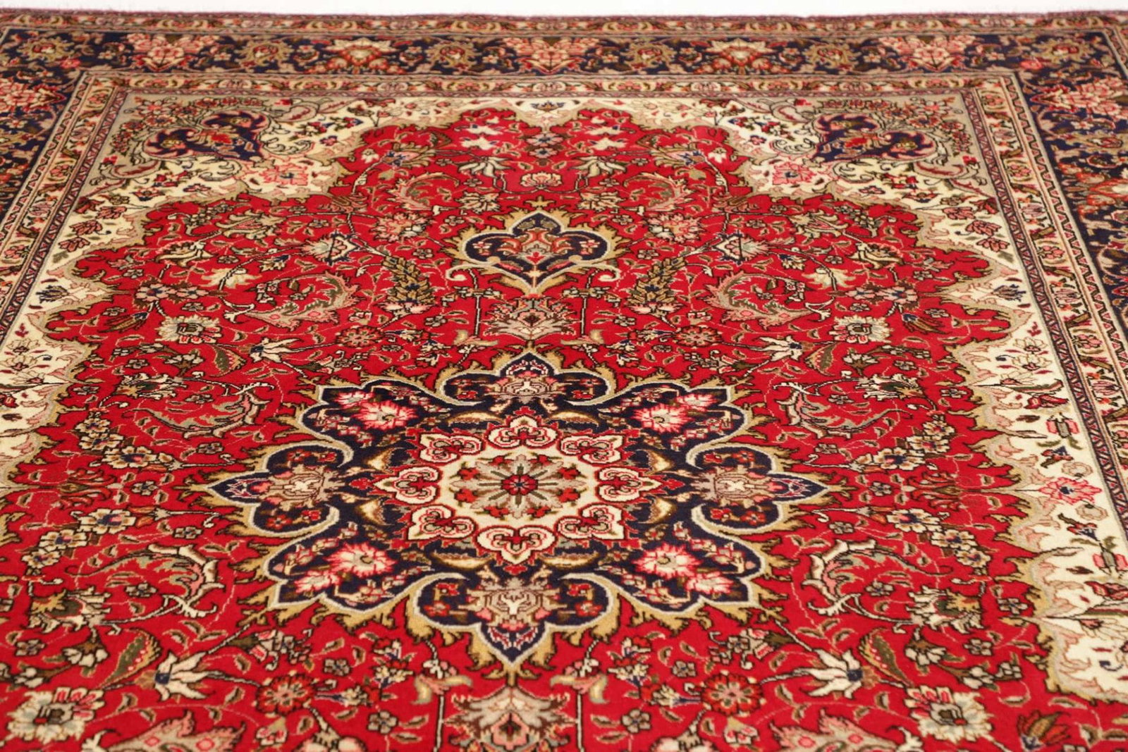 Der Täbriz-Teppich stammt aus der gleichnamigen Stadt im Iran, die für ihre exquisite Teppichproduktion bekannt ist. Die Teppiche aus Täbriz haben eine lange Tradition und sind für ihre reiche Geschichte und kulturelle Bedeutung geschätzt. In Täbriz vereinen sich die künstlerischen Einflüsse verschiedener Ethnien, was zu einem bemerkenswerten Reichtum an Designs und Farben führt. Diese Teppiche gelten als wahre Meisterwerke und haben ihren Platz in der kulturellen Identität der Region gefunden.
