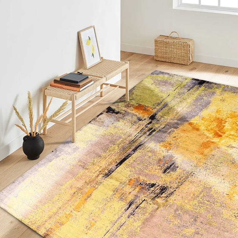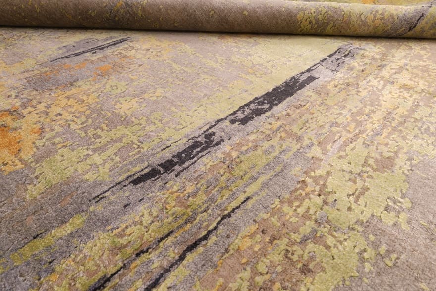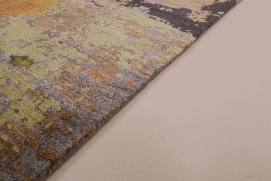 Handgewebter Teppich im skandinavischen Stil | Knotendichte: Hochwertige Verarbeitung | Material: Wolle und Seide oder Bambusviskose | Größe: 359×250 cm | In neuem Zustand | Herkunft: Indien | Farbe: Multifarbe | Form: Rechteckig | Dicke: ca. 8 mm | Gewicht: ca. 26 kg