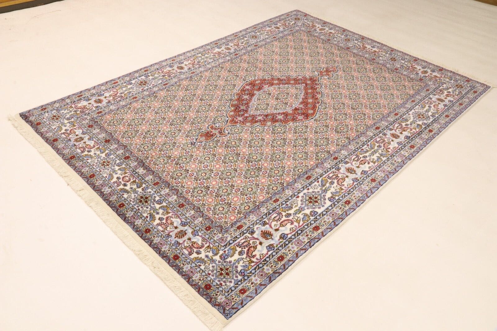 Orientteppich Moud | Knotendichte: ca. 400.000 Knoten/m² | Material: 90% Schurwolle, 10% Seide | Größe: 232 x 162 cm | Zustand: Neu, sehr gut | Herkunft: Persien, Moud | Handgeknüpft | Für Fußbodenheizung geeignet | Haustierfreundlich | Stil: Traditionell Orientalisch/Persisch