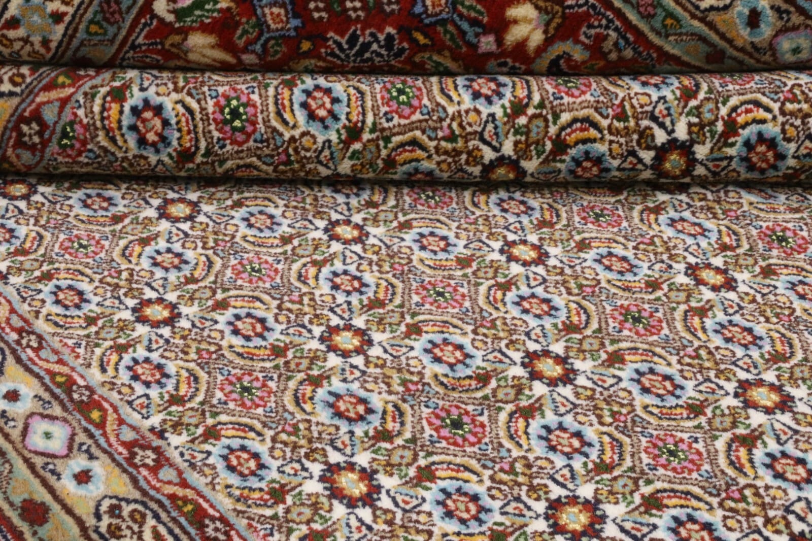 Der Moud-Teppich ist in der bekannten Region Moud im Iran beheimatet, einer Gegend, die für ihre exquisiten Teppiche berühmt ist. Diese Region hat ihre eigene, reiche Teppichtradition, die bis ins 16. Jahrhundert zurückreicht. Moud-Teppiche sind bekannt für ihre dichten, sehr präzise geknüpften Designs sowie für die Verwendung von erdigen Farben und traditionellen Mustern, die oft in floralen oder geometrischen Darstellungen erscheinen. Die Kunst des Teppichknüpfens in dieser Region hat Generationen überdauert, und lokale Handwerker geben ihre Techniken und Designs von Generation zu Generation weiter.