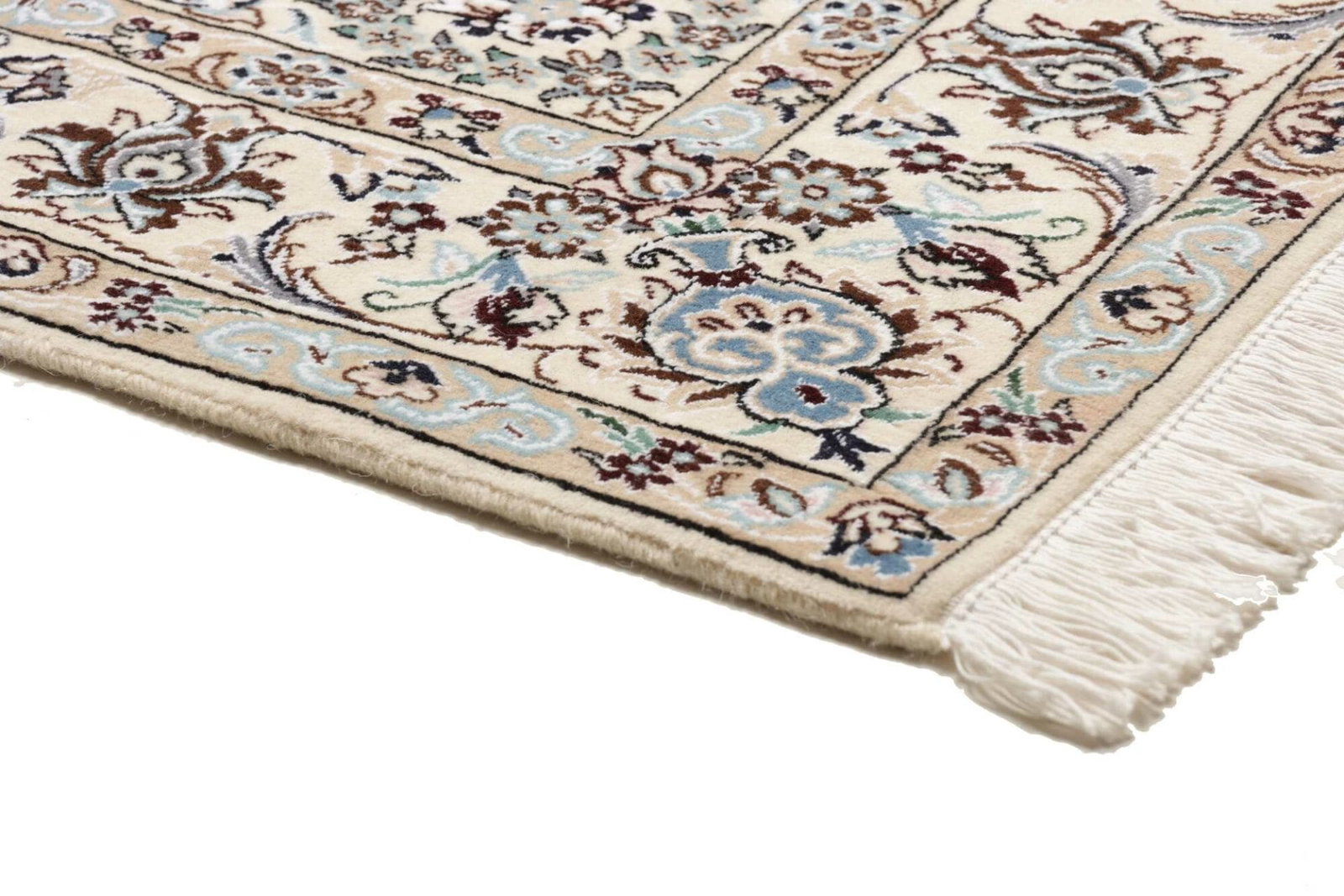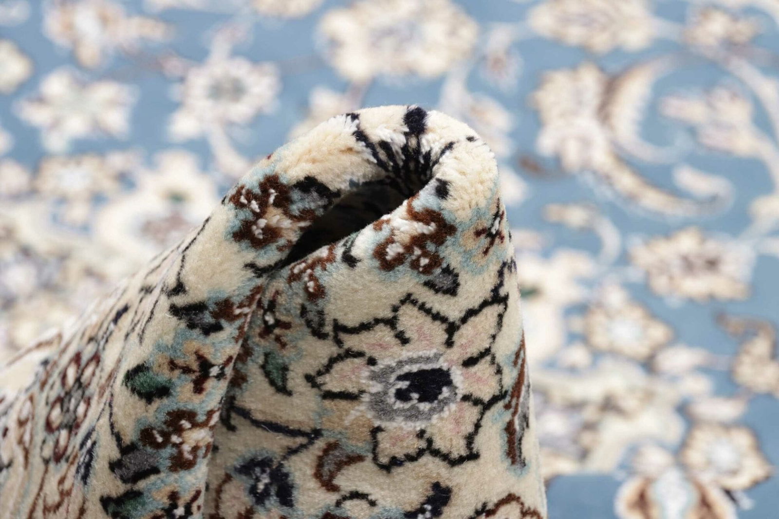 Um die Lebensdauer Ihres Orientteppichs Nain zu verlängern, empfehlen wir regelmäßiges Staubsaugen ohne rotierende Bürsten. Bei Verschmutzungen sollten Flecken sofort mit einem feuchten Tuch und mildem Reinigungsmittel behandelt werden. Zudem ist eine professionelle Reinigung alle paar Jahre ratsam.