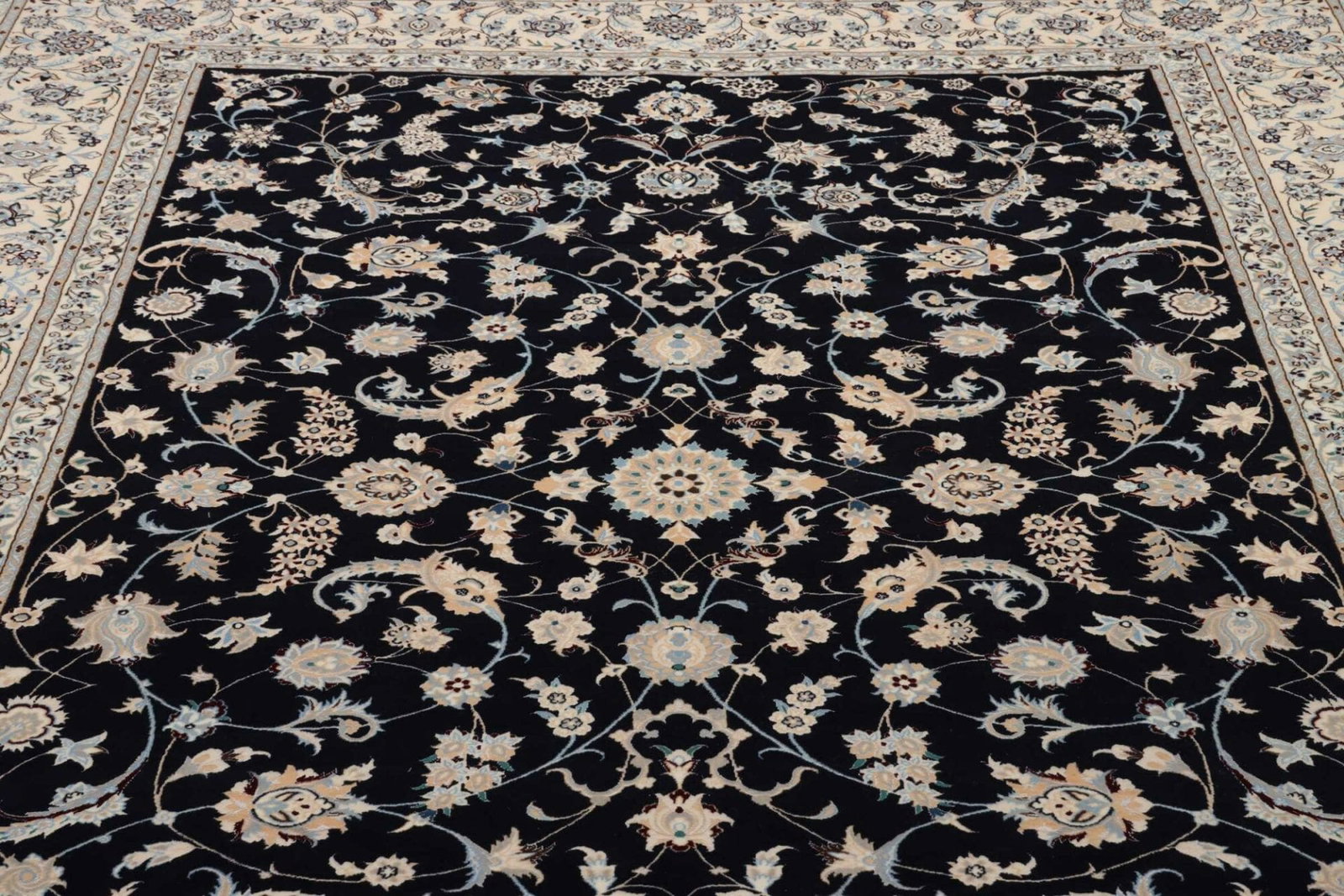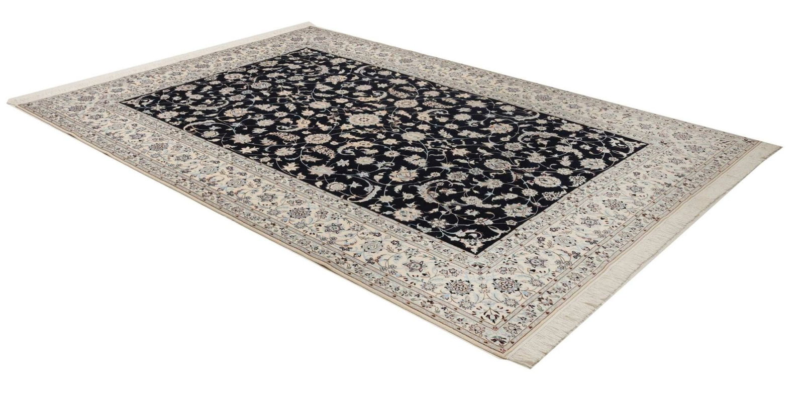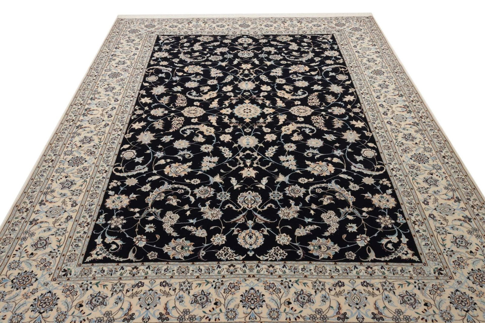 Nain Teppich | Knotendichte: ca. 900.000 Knoten/m² | Material: 100% Schurwolle (Flor), 100% Baumwolle (Kette) | Größe: 210 x 308 cm | Zustand: Neu | Herkunft: Iran | Verarbeitung: Handgeknüpft | Muster: Klassische florale Motive