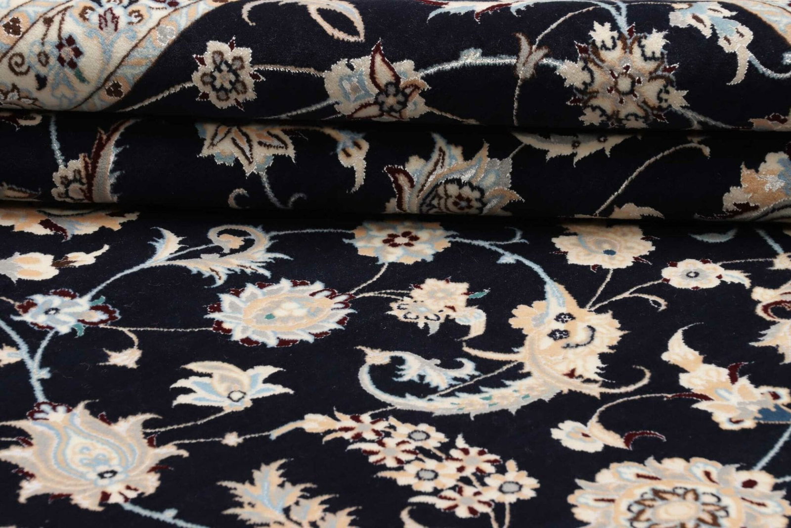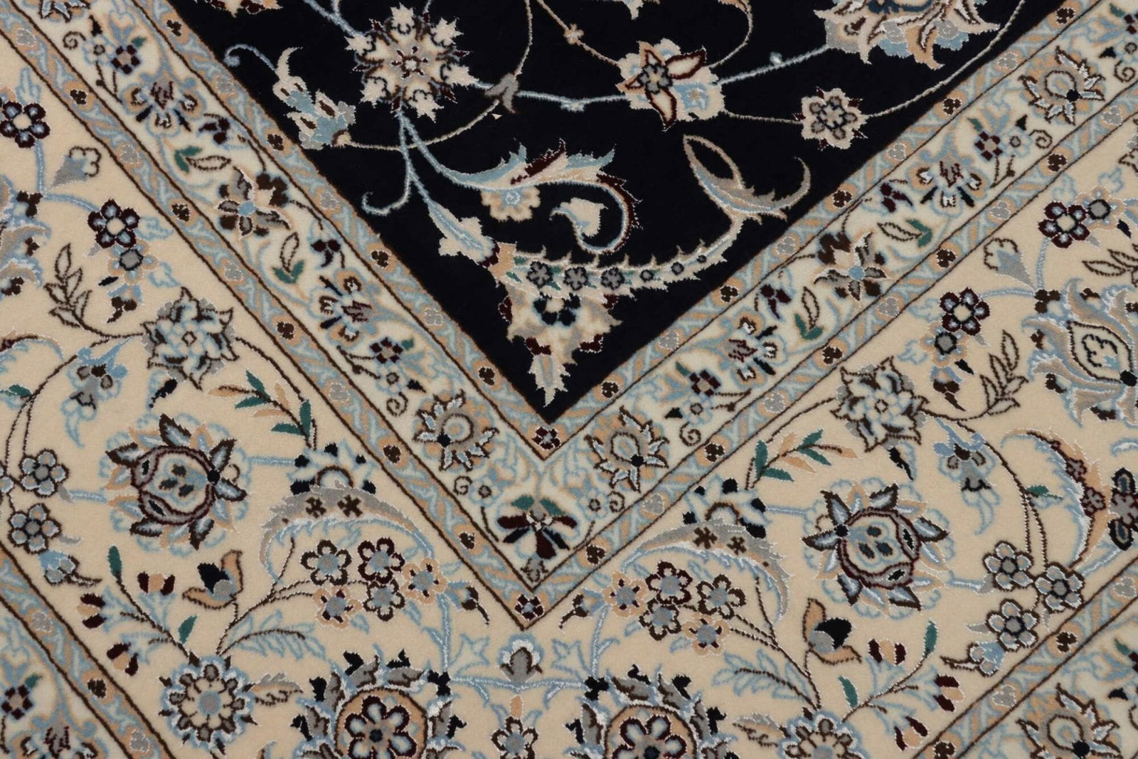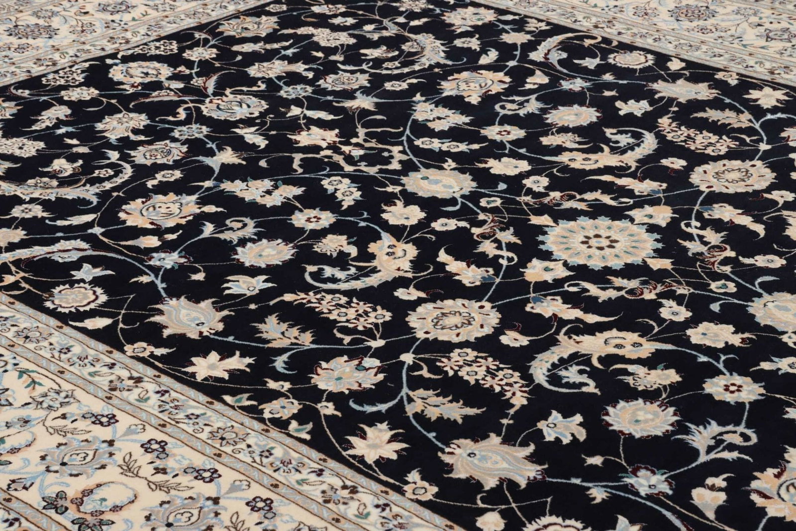 Nain Teppich | Knotendichte: ca. 900.000 Knoten/m² | Material: 100% Schurwolle (Flor), 100% Baumwolle (Kette) | Größe: 210 x 308 cm | Zustand: Neu | Herkunft: Iran | Verarbeitung: Handgeknüpft | Muster: Klassische florale Motive