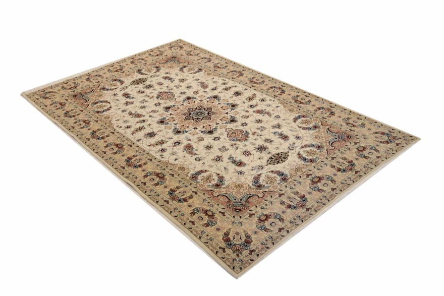 NAIN 9 La Teppich | Knotendichte: 450.000 – 500.000 Knoten/m² | Material: Wolle und Seide | Größe: 319×197 cm | Zustand: Neu | Herkunft: Iran/Persien | Verarbeitung: Handgeknüpft | Dicke: ca. 10 mm | Farbe: Weiß/Beige