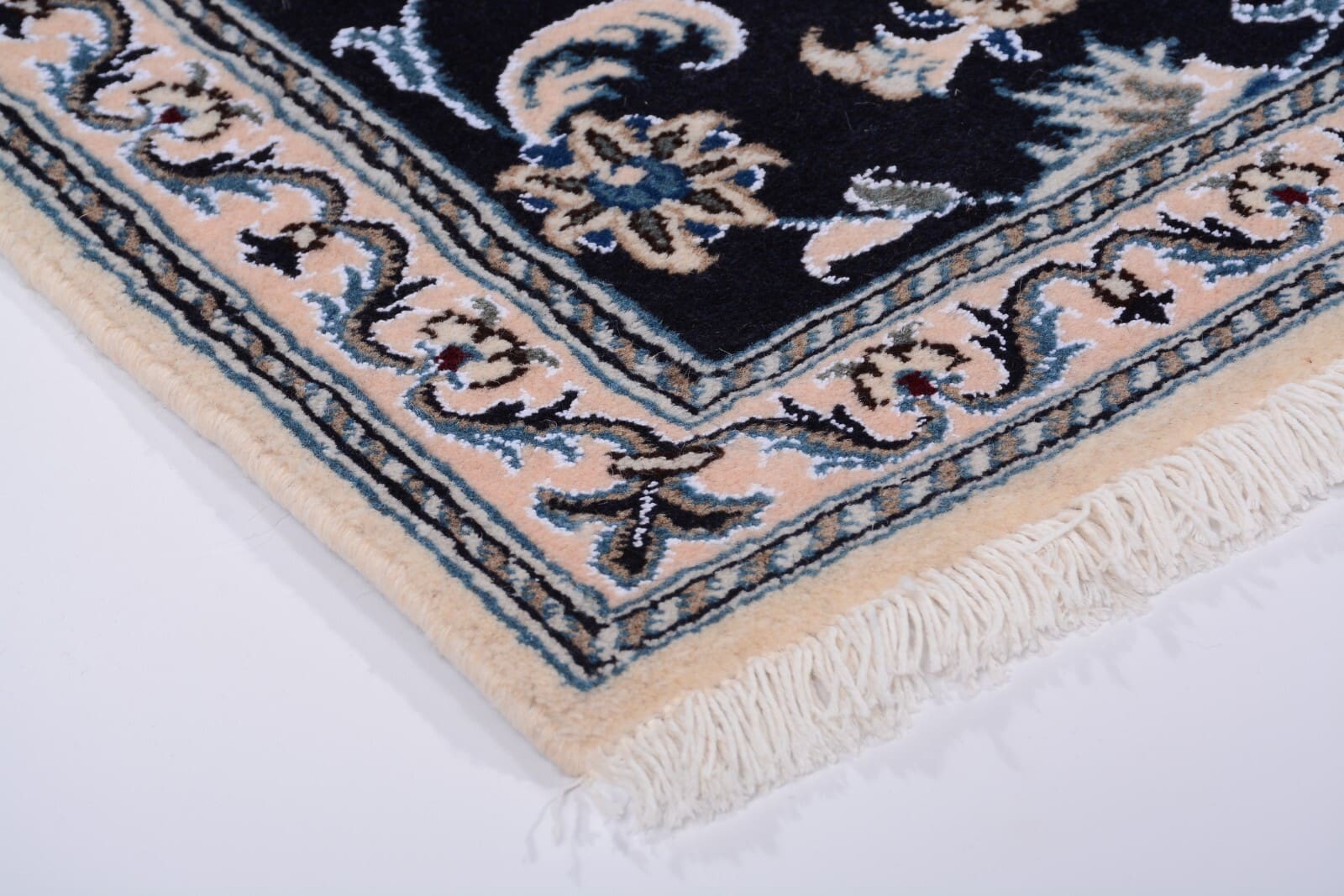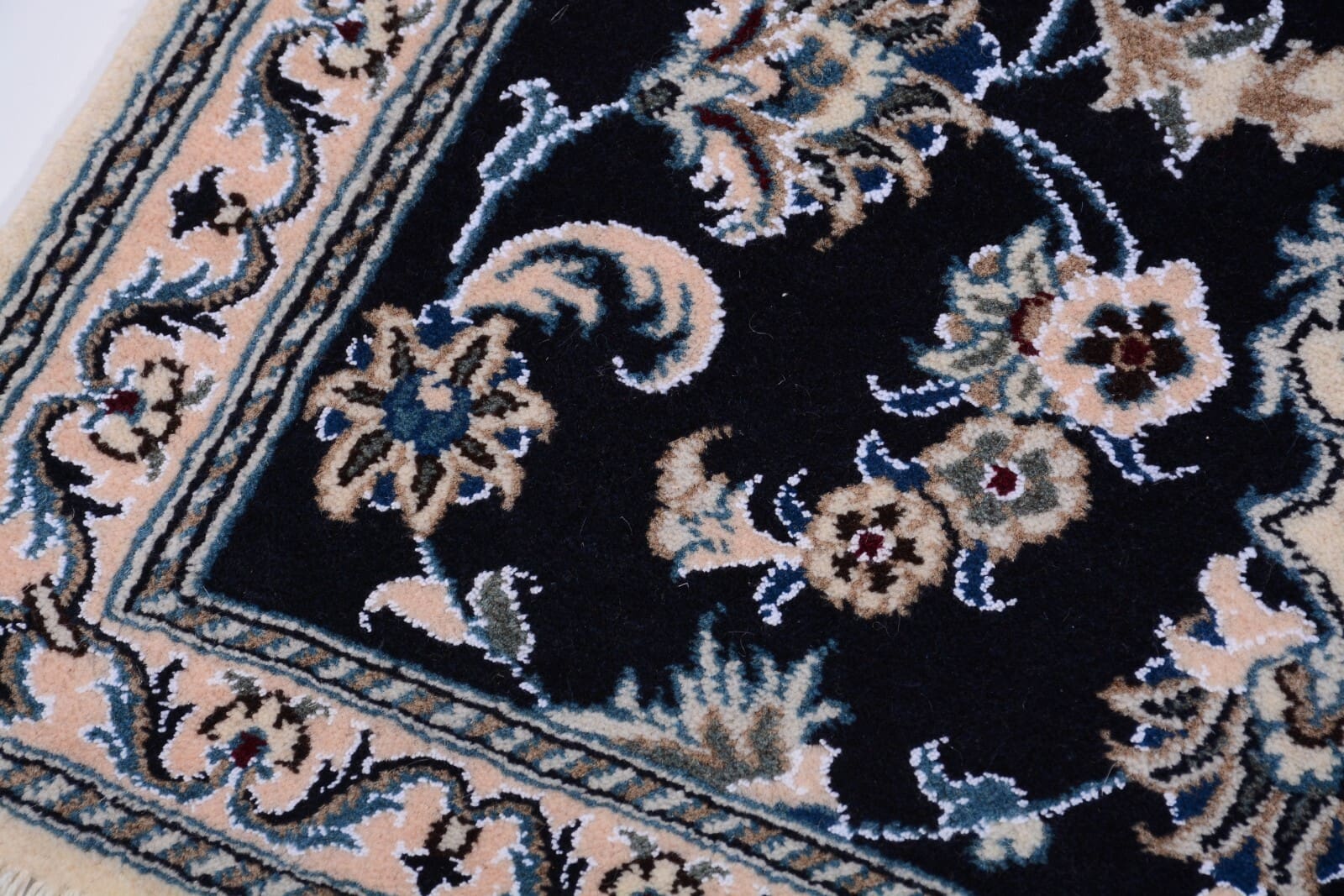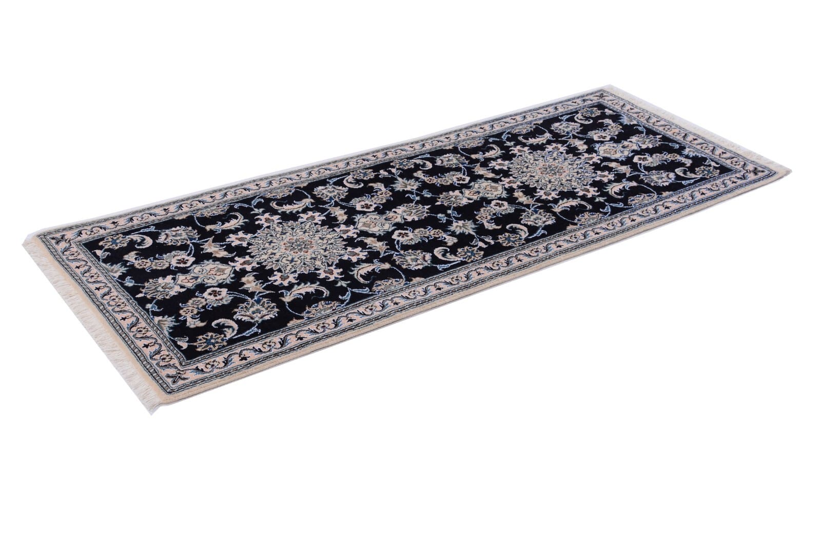 Orientteppich Nain Läufer 204×78 cm, 300.000 Knoten, floral, blau, handgeknüpft