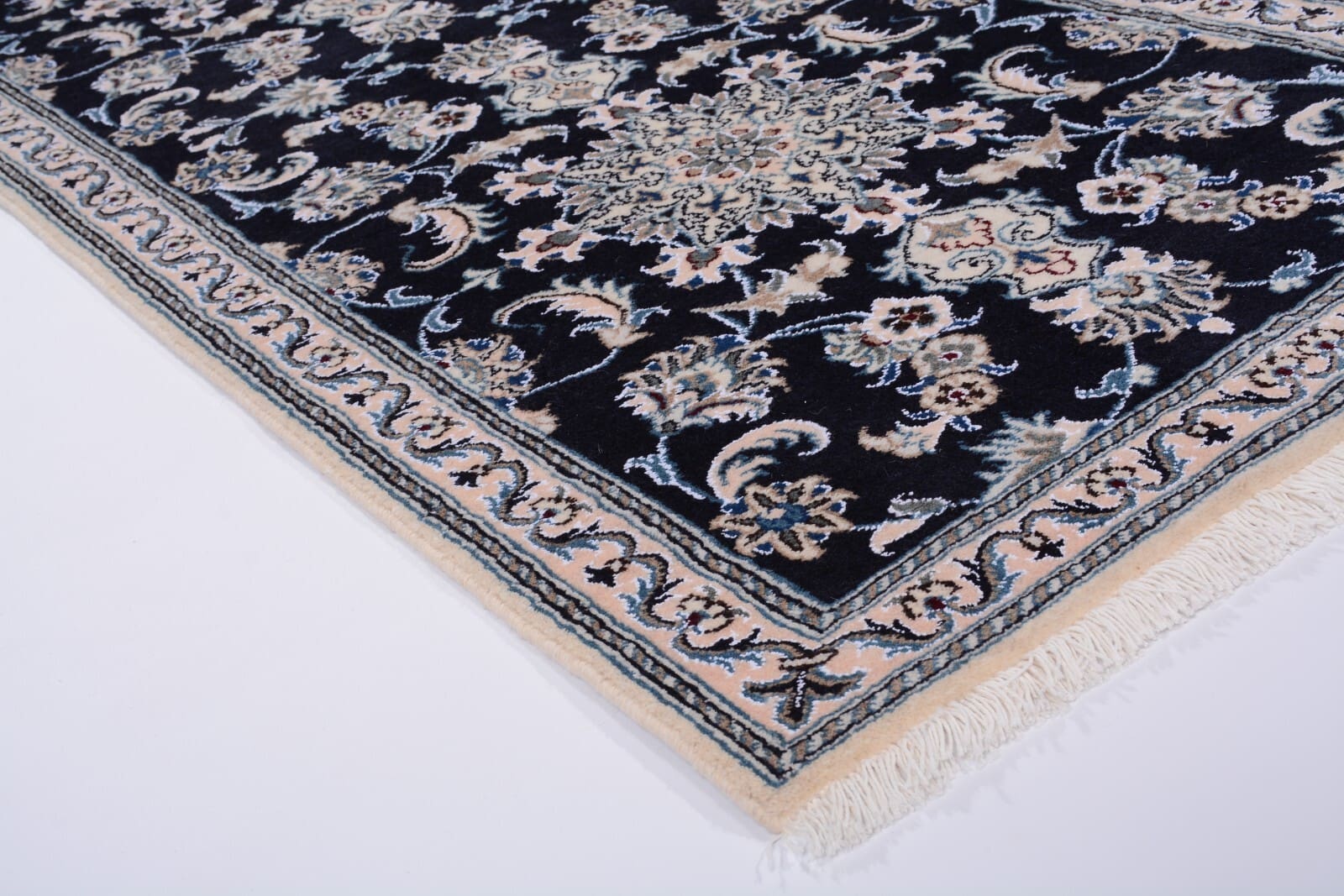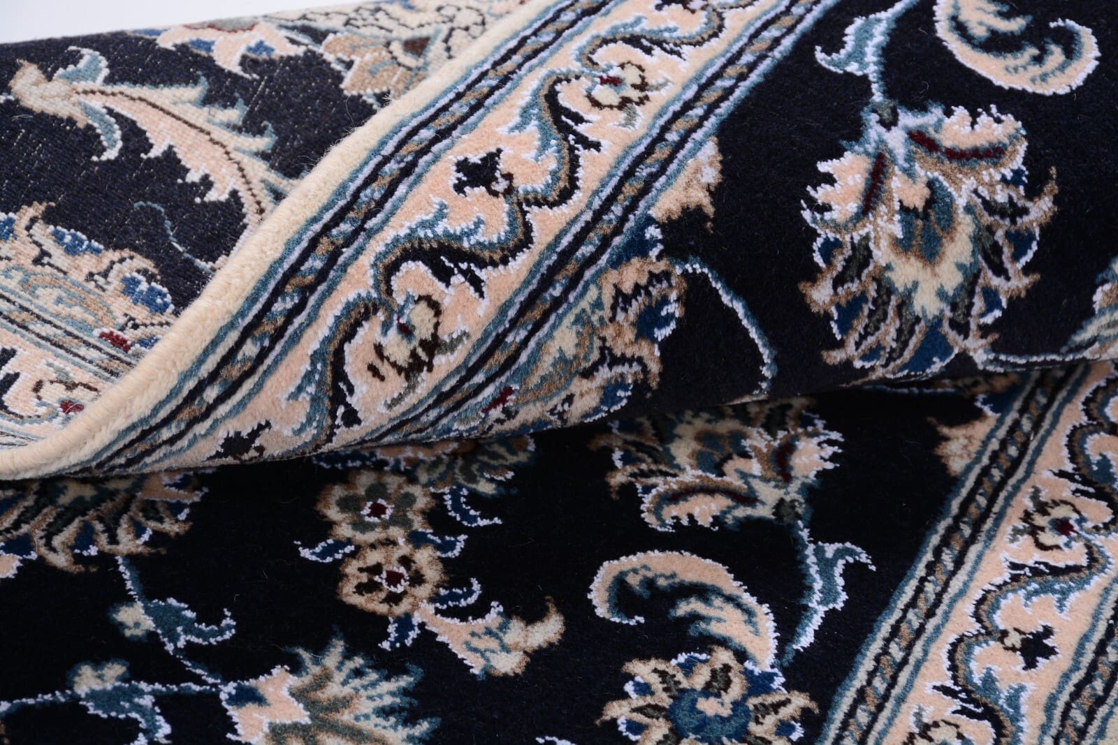 Der Teppich stammt aus der berühmten Stadt Nain im Iran, einer Region, die für ihre hochwertigen Perserteppiche weltbekannt ist. Nain-Teppiche sind das Ergebnis einer langen Tradition, die bis ins 19. Jahrhundert zurückreicht. Die Teppichknüpfer in dieser Region sind für ihre handwerklichen Fähigkeiten und ihre Kreativität geschätzt. In Nain werden Teppiche oft mit komplexen floralen Motiven und harmonischen Farbkombinationen angefertigt, die sowohl die Natur als auch die Kultur der Region widerspiegeln. Nain-Teppiche sind nicht nur als Kunstwerke anerkannt, sondern auch als eine Form der Investition, da sie im Laufe der Zeit an Wert gewinnen.