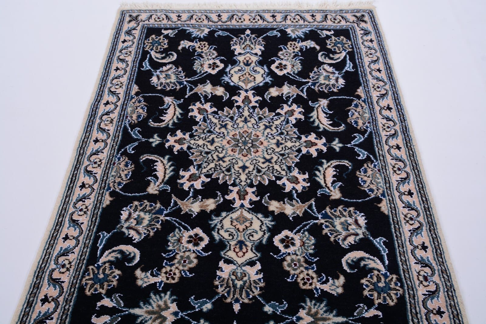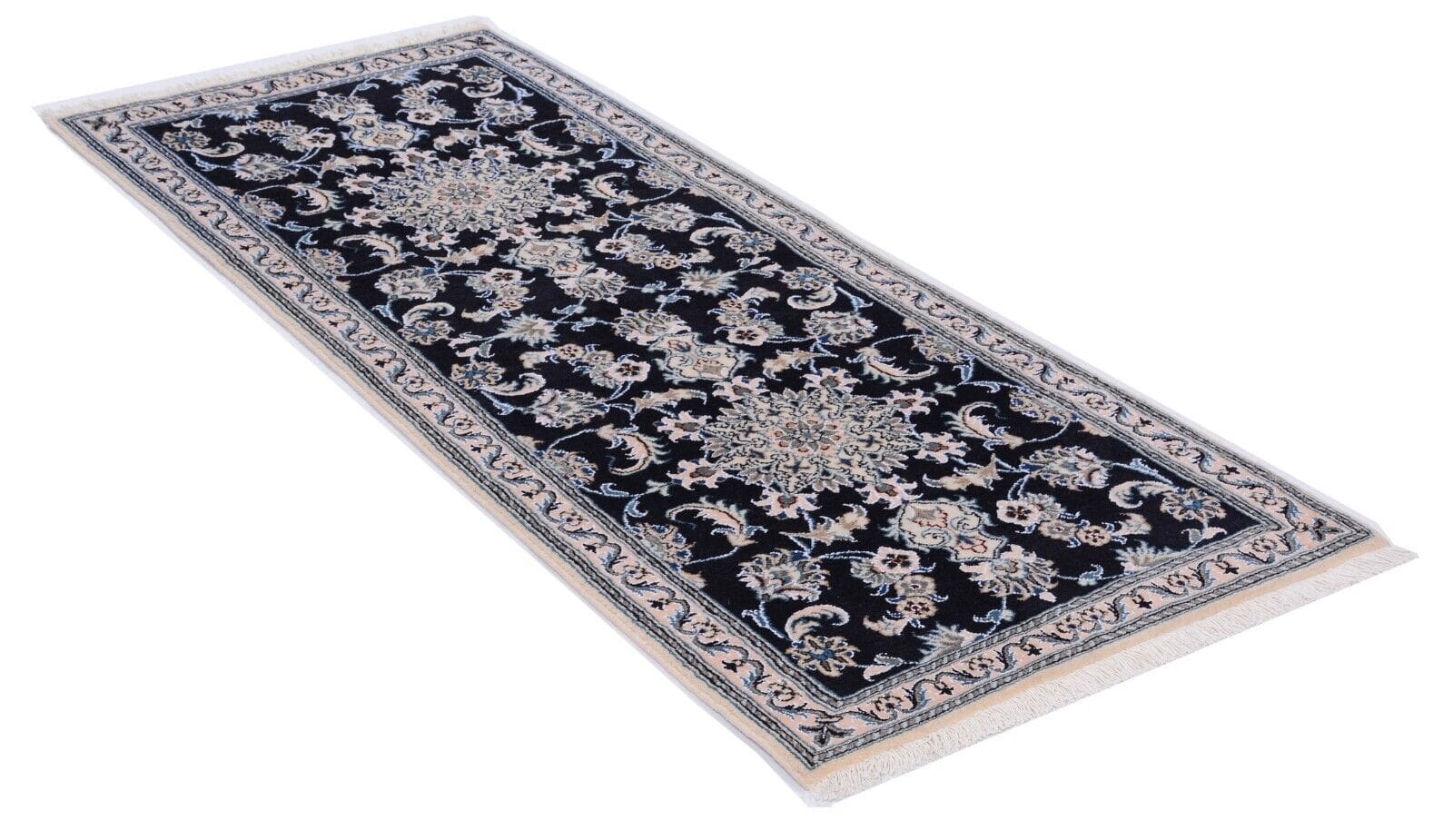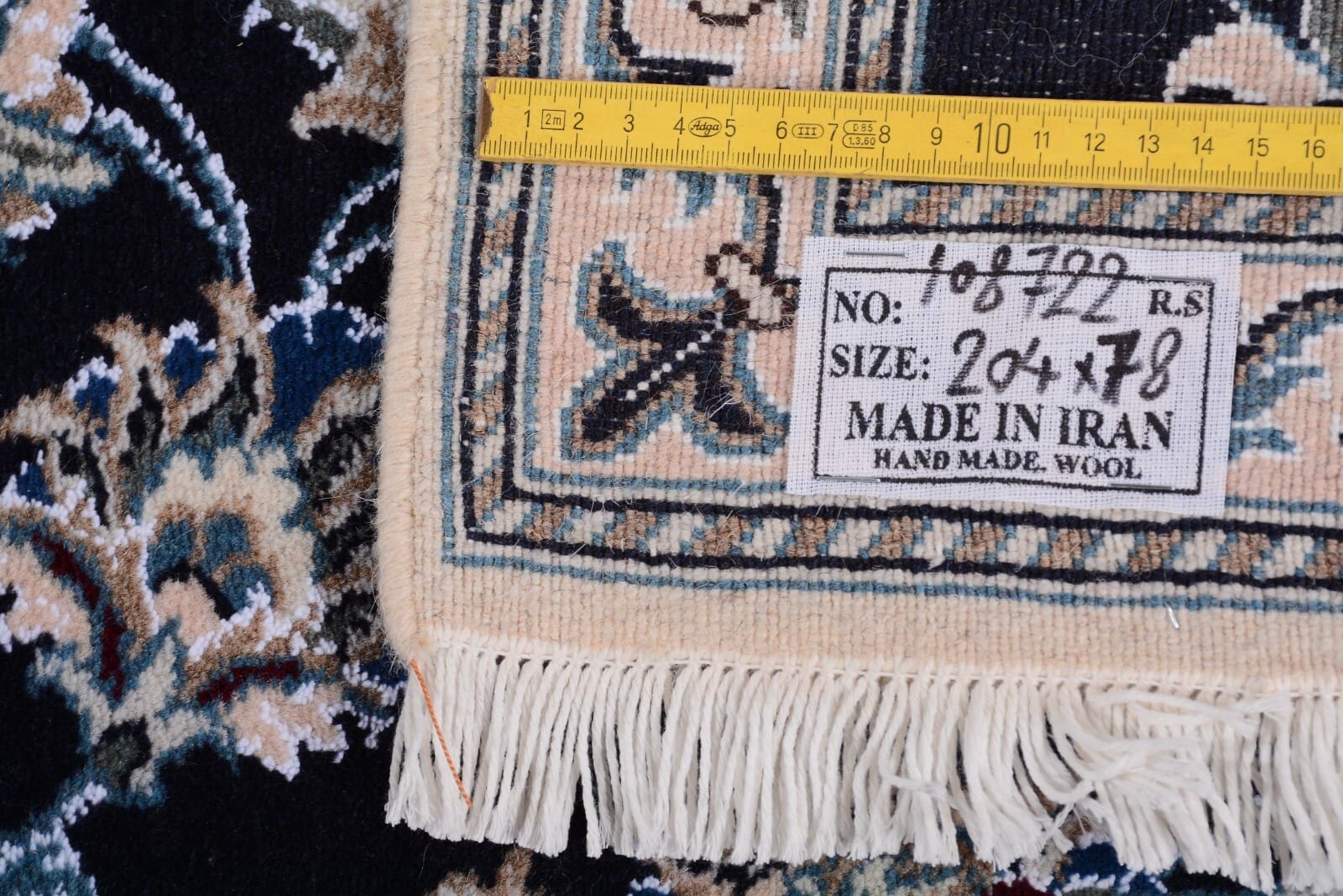 Handgeknüpfter Nain Teppichläufer | Größe: 204 x 78 cm | Knotendichte: 300.000 Knoten/m² | Material: 100% Schurwolle | Herkunft: Persien | Zustand: Neu und perfekt | Dicke: ca. 12 mm | Florhöhe: 12 mm | Muster: Florales Medaillon | Geeignet für Fußbodenheizung | Stil: Traditionell Orientalisch/Persisch