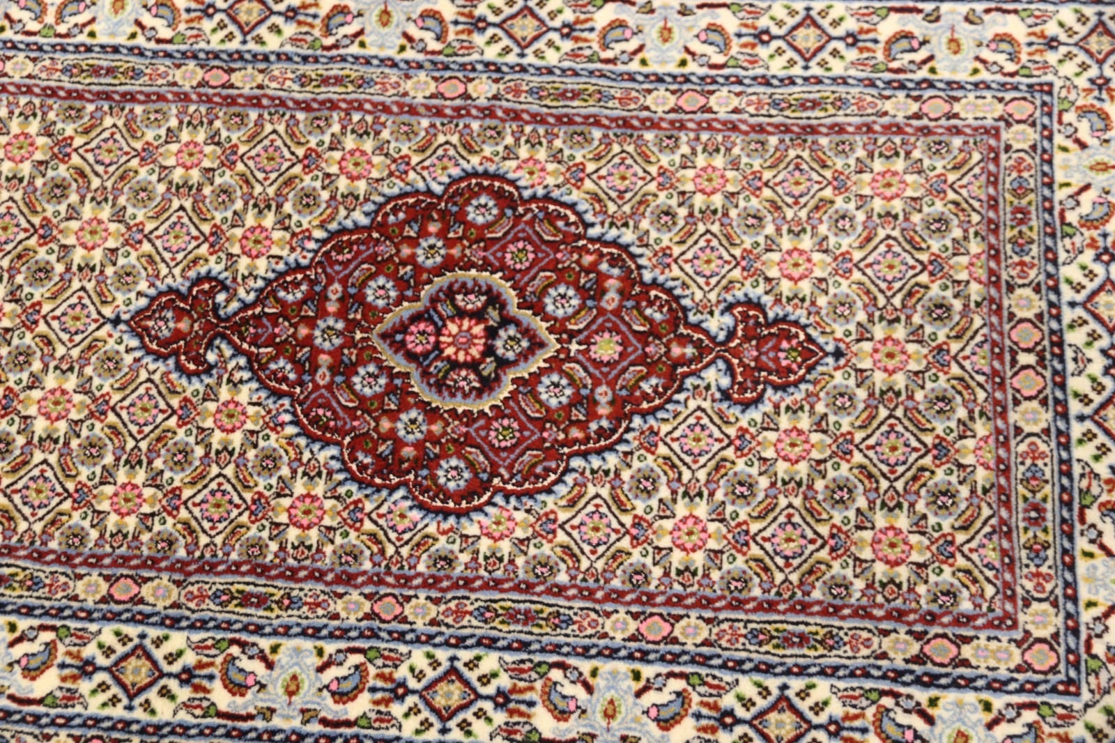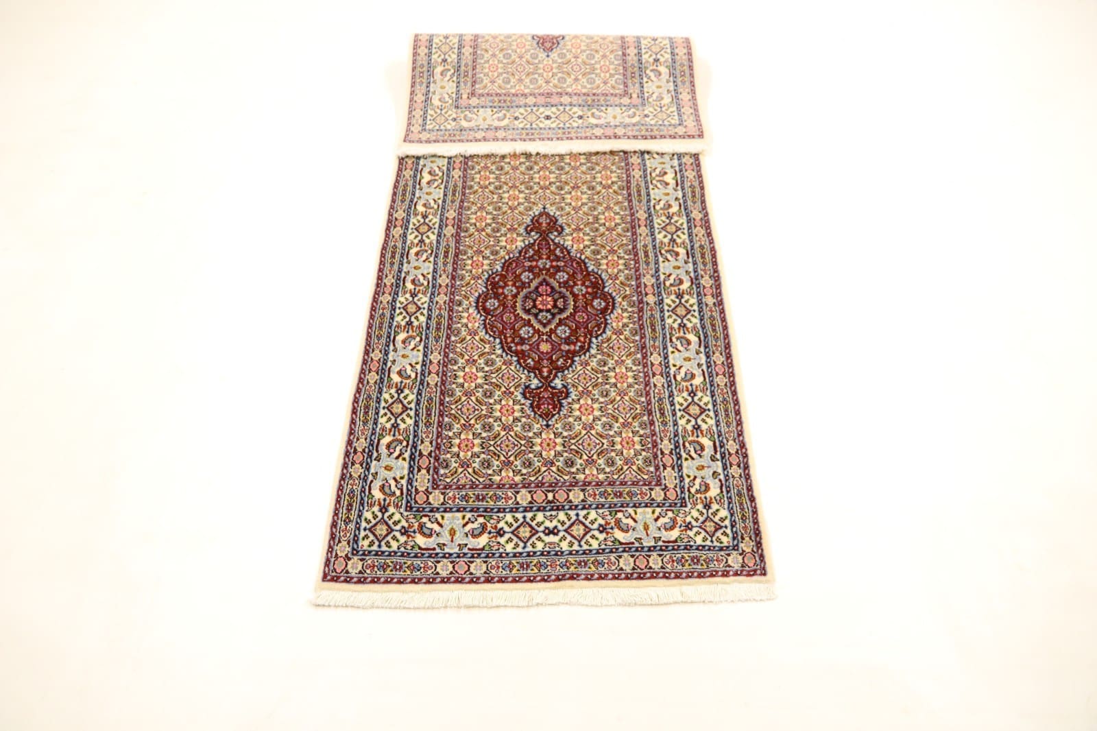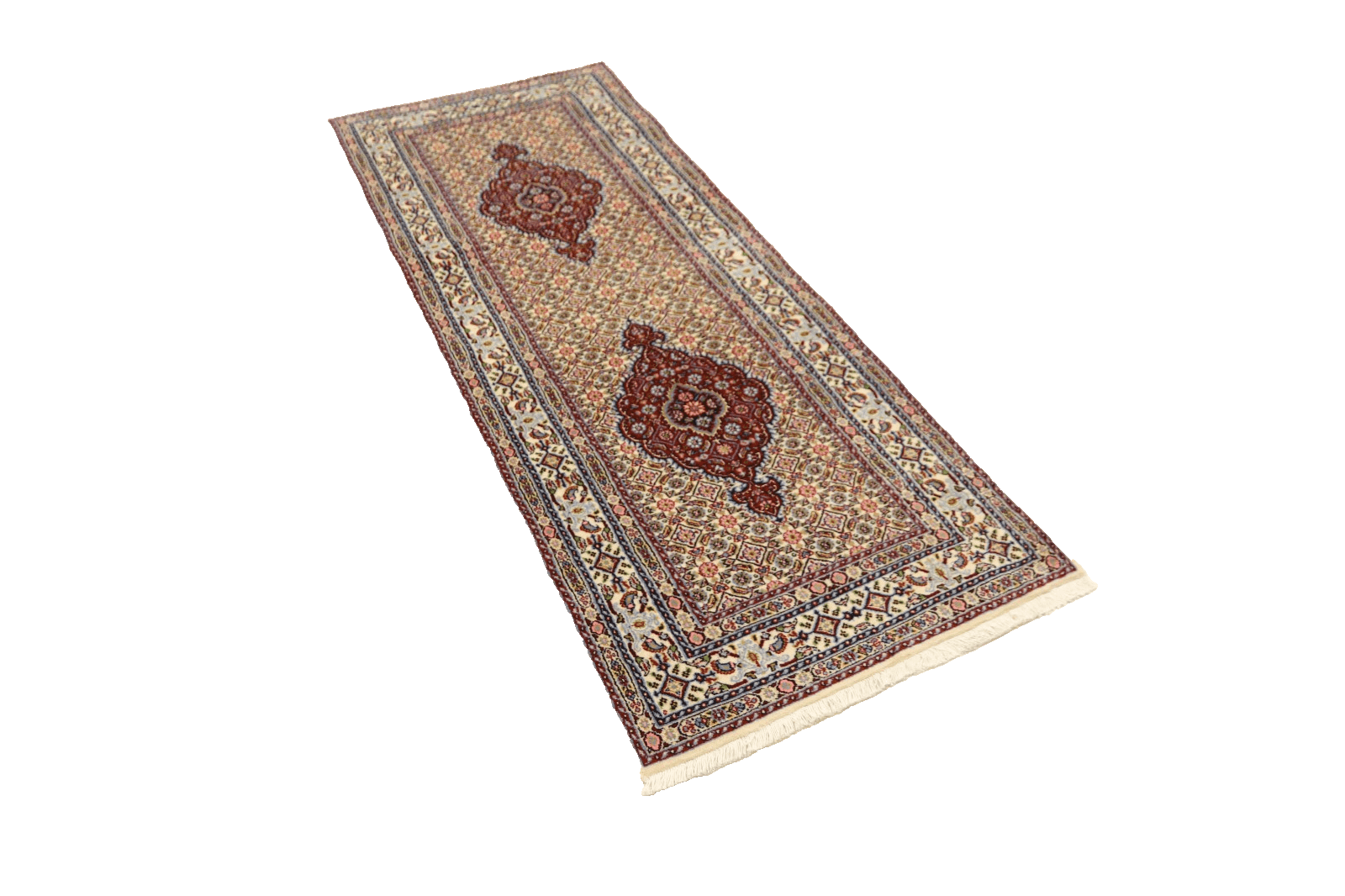 Orientteppich super Moud | Knotendichte: ca. 400.000 Knoten/m² | Material: 90% Schurwolle, 10% Seide | Größe: 199 x 77 cm | Zustand: Neu, sehr gut | Herkunft: Persien, Moud | Handgeknüpft | Für Fußbodenheizung geeignet | Haustierfreundlich | Muster: Orientalisch