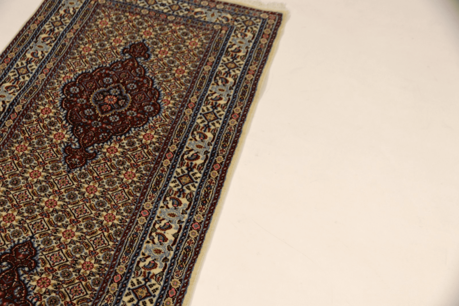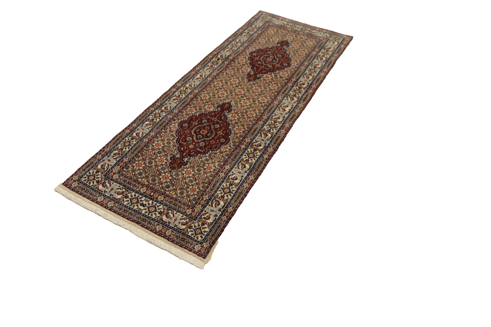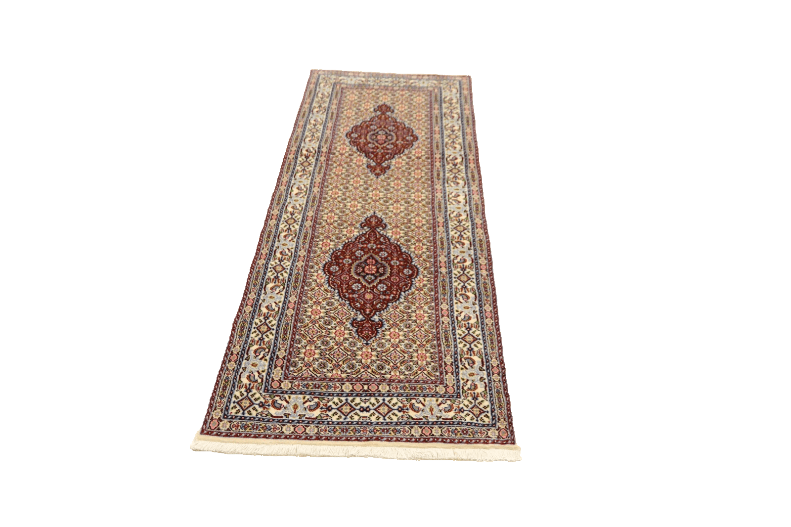 Orientteppich super Moud | Knotendichte: ca. 400.000 Knoten/m² | Material: 90% Schurwolle, 10% Seide | Größe: 199 x 77 cm | Zustand: Neu, sehr gut | Herkunft: Persien, Moud | Handgeknüpft | Für Fußbodenheizung geeignet | Haustierfreundlich | Muster: Orientalisch