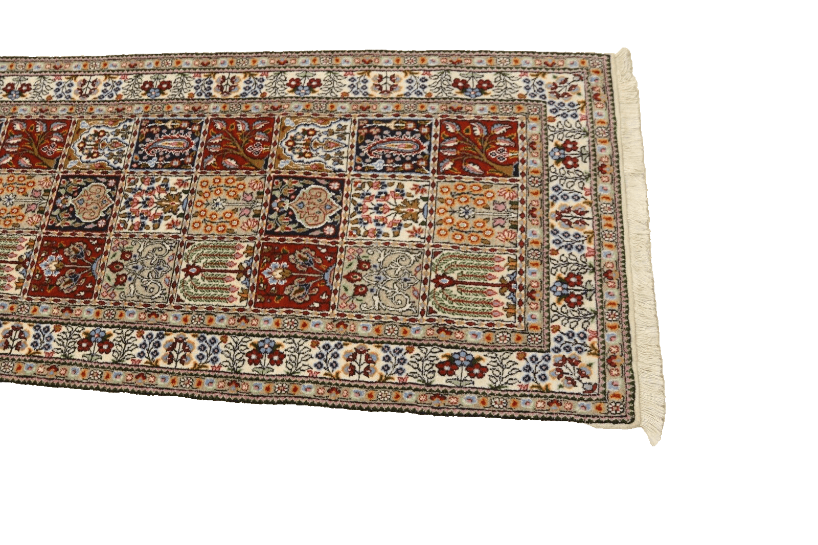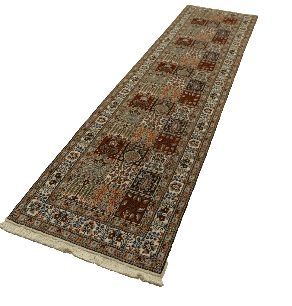 Handgeknüpfter Orientteppich | Knotendichte: 400.000 Knoten/m² | Material: 90% Schurwolle, 10% Seide | Größe: 298 x 78 cm | Zustand: Neu/Sehr gut | Herkunft: Persien, Moud | Besonderheiten: Für Fußbodenheizung geeignet, Haustierfreundlich | Stil: Traditionell Orientalisch/Persisch | Florhöhe: 8 mm