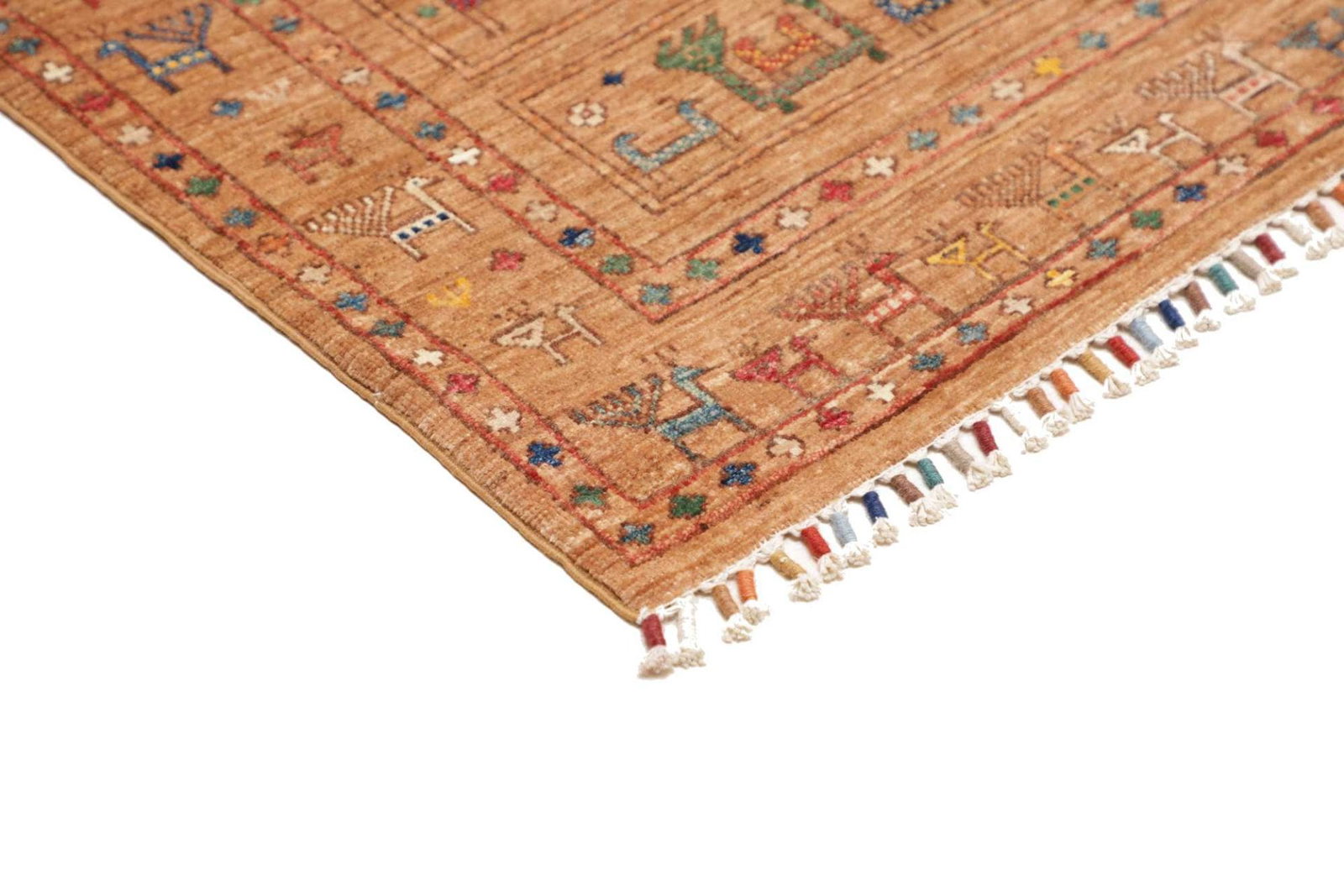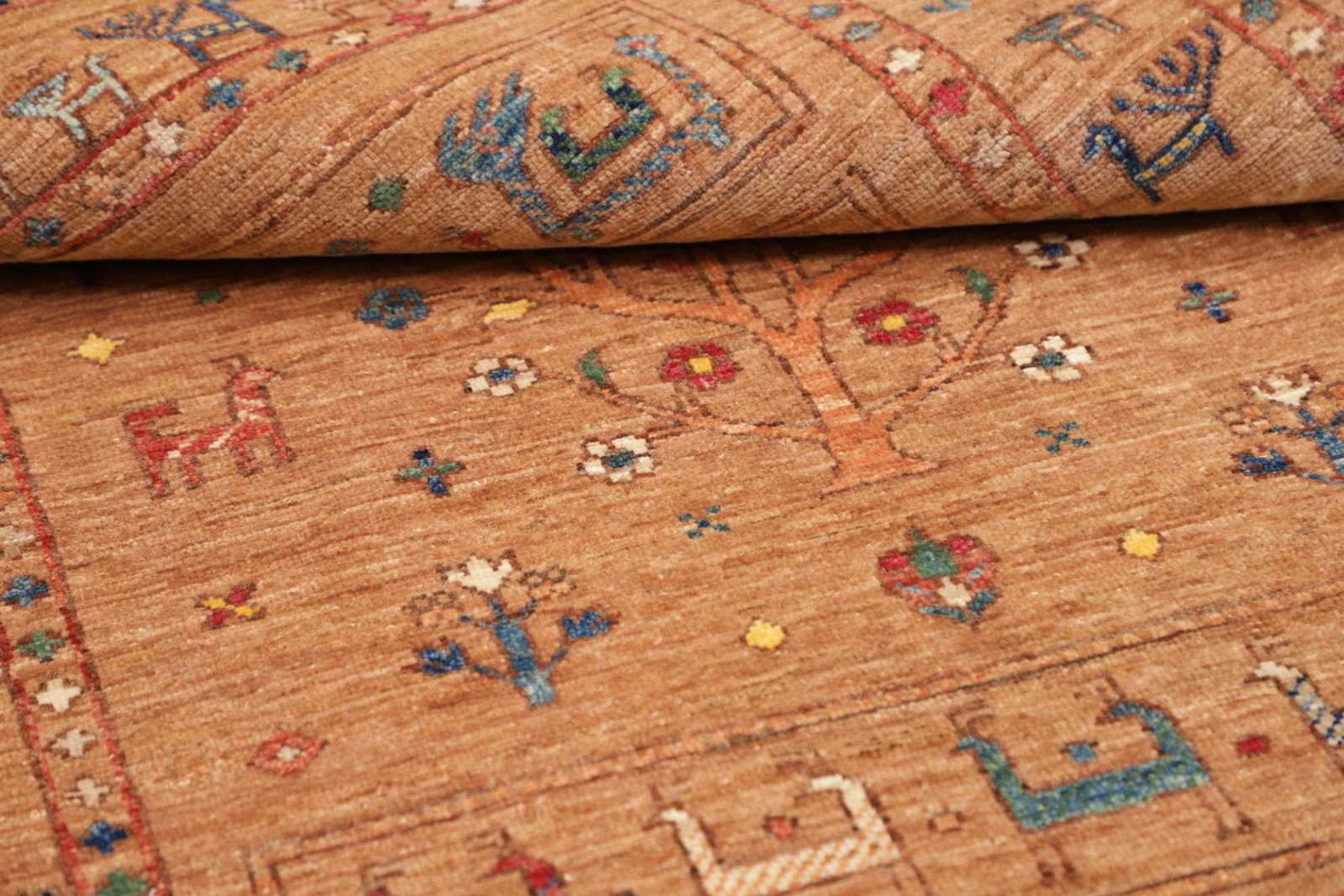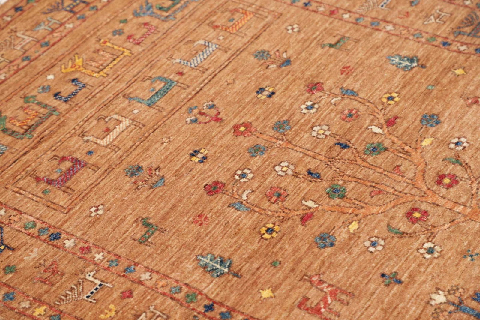 Der Teppich ist aus feinster Schurwolle gefertigt, die nicht nur für ihre Langlebigkeit geschätzt wird, sondern auch für ihre weiche Haptik. Schurwolle ist ein nachhaltig gewonnenes Material, das sich durch höchste Strapazierfähigkeit und hervorragende Isolationseigenschaften auszeichnet. Diese natürliche Faser sorgt zudem für optimale Wärme und ist pflegeleicht. Die handgeknüpfte Technik verleiht dem Teppich zudem eine besondere Knotendichte und Festigkeit, wodurch er über Jahre hinweg seine Schönheit bewahrt. Jeder Teppich ist ein Unikat, das mit Liebe und Hingabe gefertigt wurde.