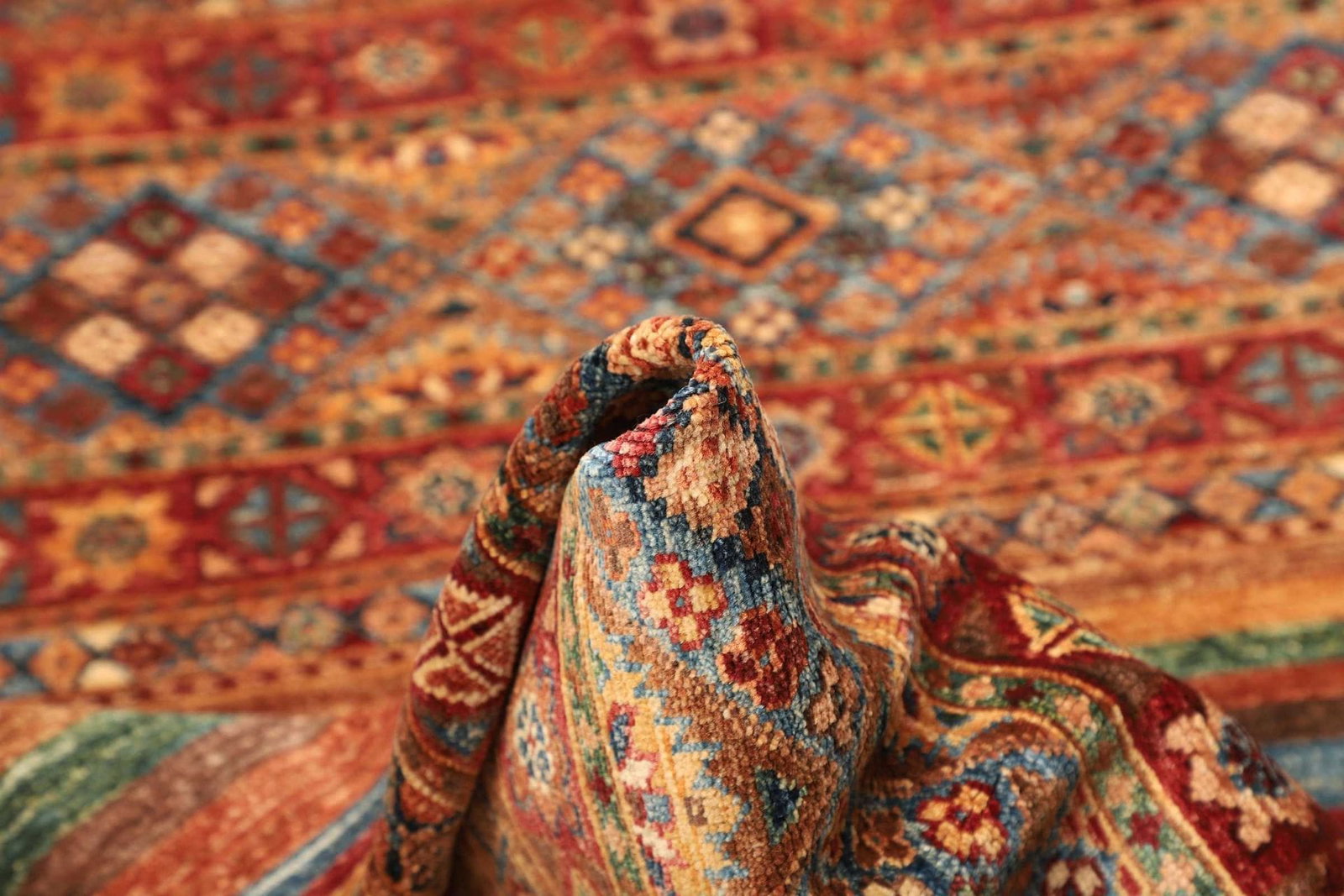 Dieser Teppich stammt aus der renommierten Region Samarkand, die für ihre reiche Teppichtradition bekannt ist. In der Vergangenheit war Samarkand ein wichtiger Knotenpunkt der Seidenstraße, was den Austausch von Waren und Ideen zwischen Ost und West erleichterte. Diese kulturellen Einflüsse sind in den Teppichen der Region zu finden, die häufig künstlerische sowie geometrische Muster und leuchtende Farben aufweisen. Die Handwerker in Samarkand nutzen jahrhundertealte Techniken, die von Generation zu Generation weitergegeben wurden, um Teppiche von unvergleichlicher Qualität zu kreieren.