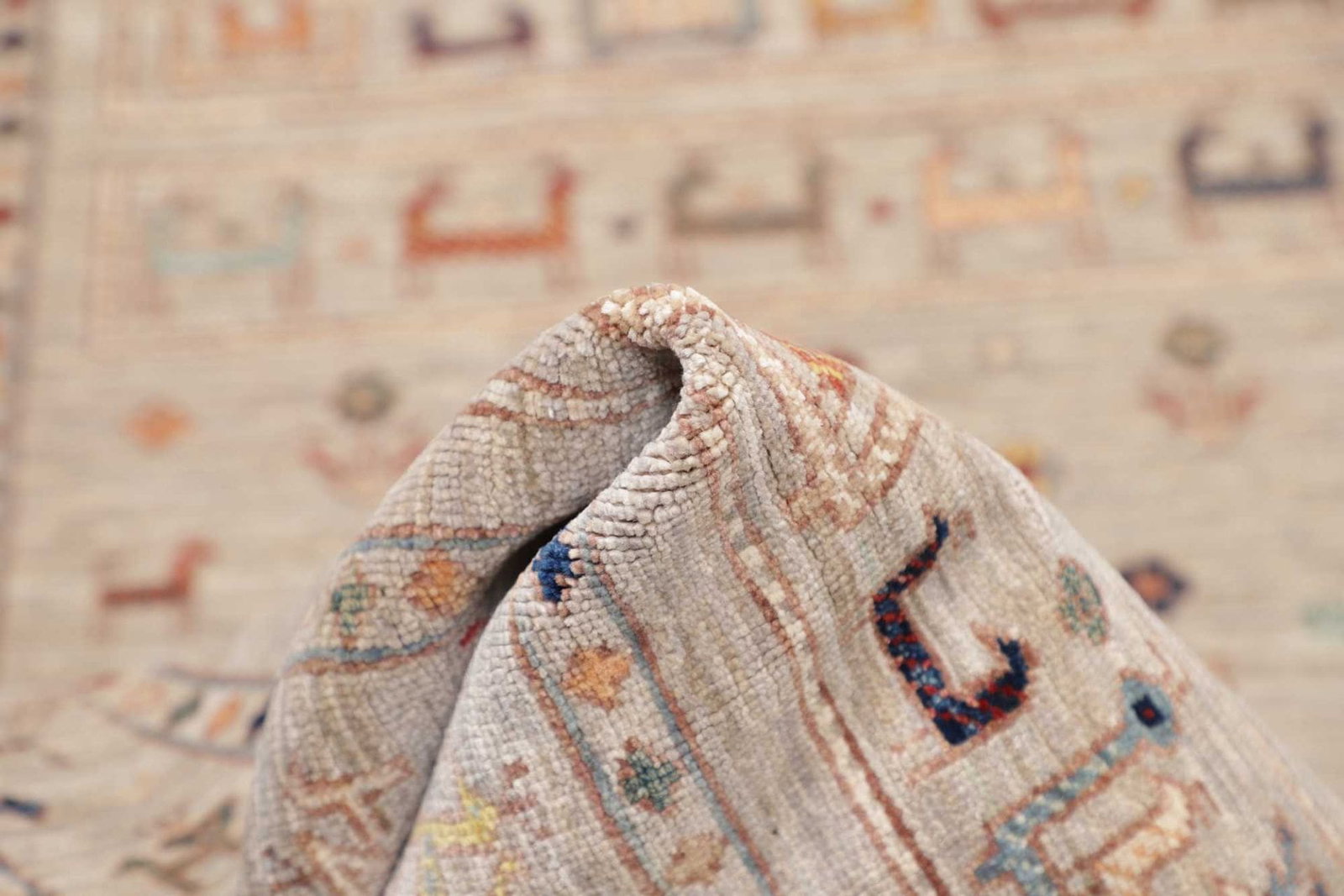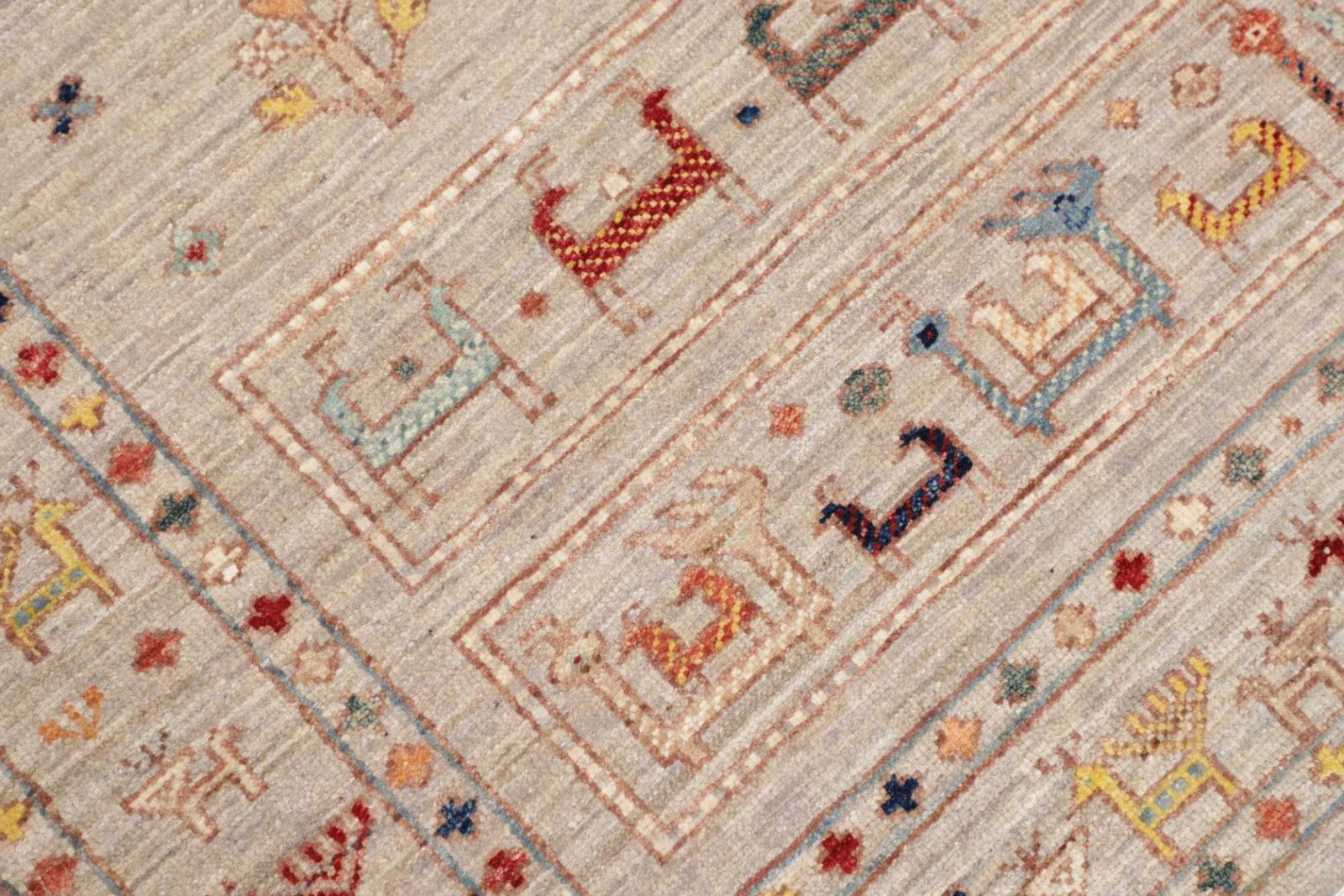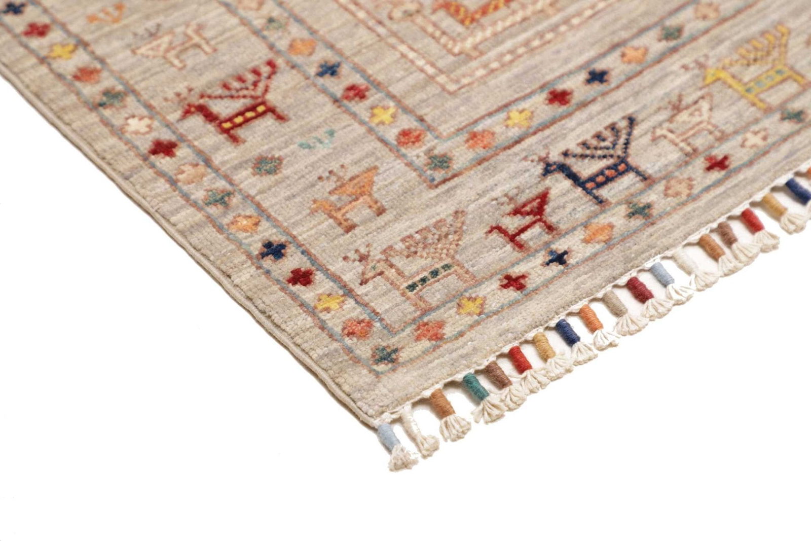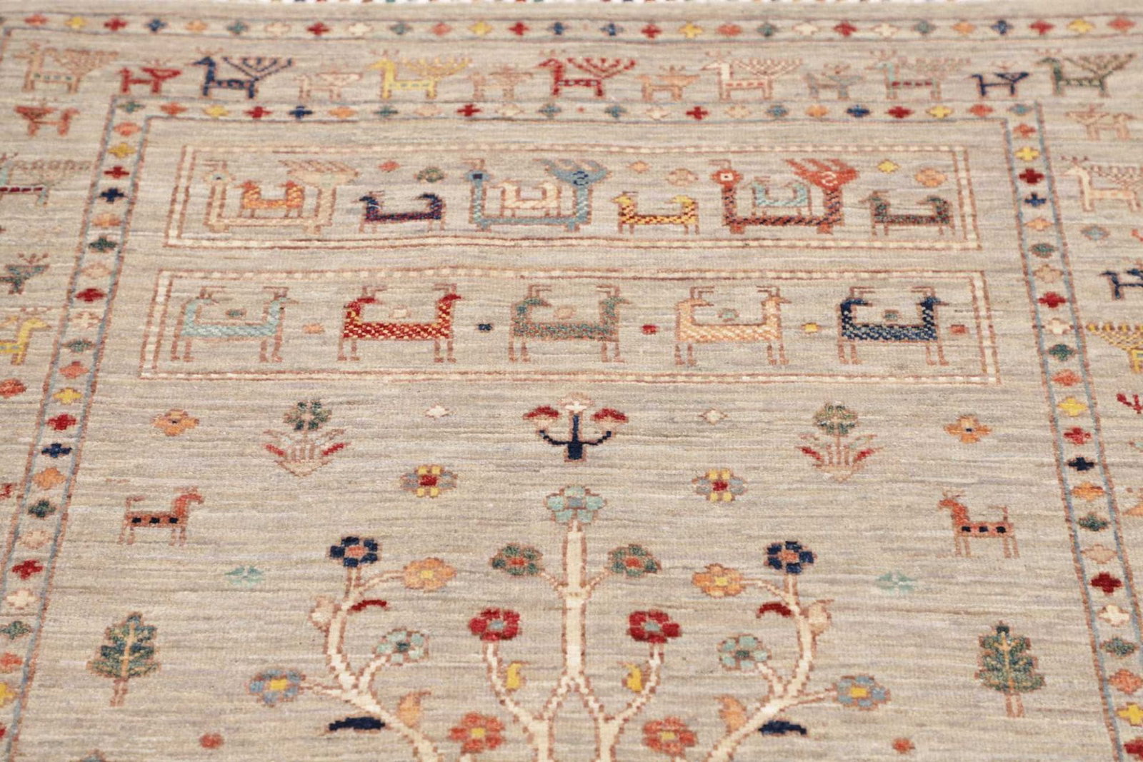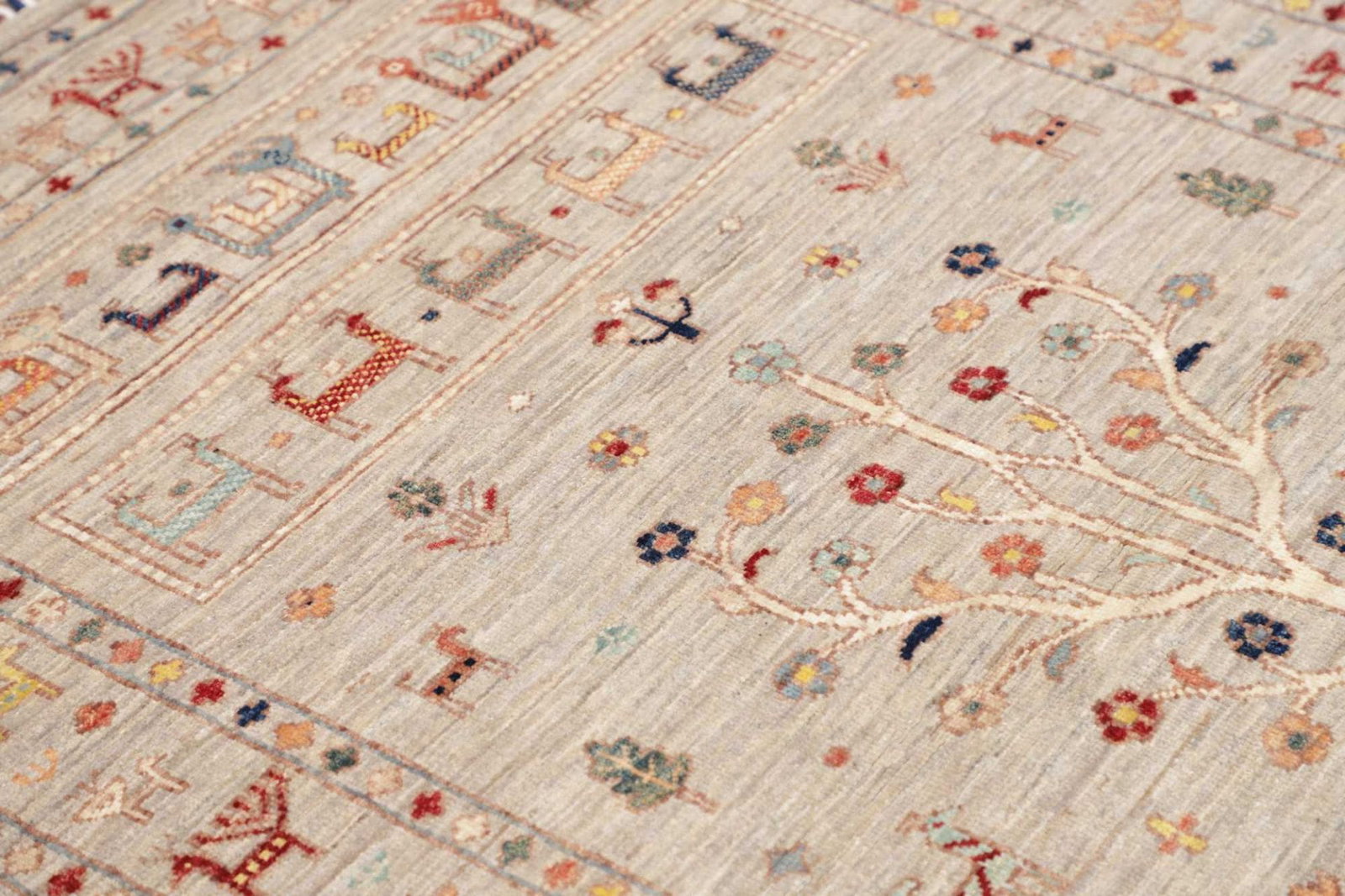 Der Orientteppich Samarkand ist aus 100 % Schurwolle gefertigt, die für ihre Langlebigkeit, Weichheit und Widerstandsfähigkeit bekannt ist. Diese hochwertige Wolle sorgt nicht nur für eine angenehme Haptik, sondern auch für eine bemerkenswerte Strapazierfähigkeit, die es ermöglicht, den Teppich über viele Jahre hinweg zu nutzen. Die handknüpfte Technik, die in diesem Teppich verwendet wird, gewährleistet eine hohe Knotendichte, was ihn besonders robust und widerstandsfähig gegen Abnutzung macht.