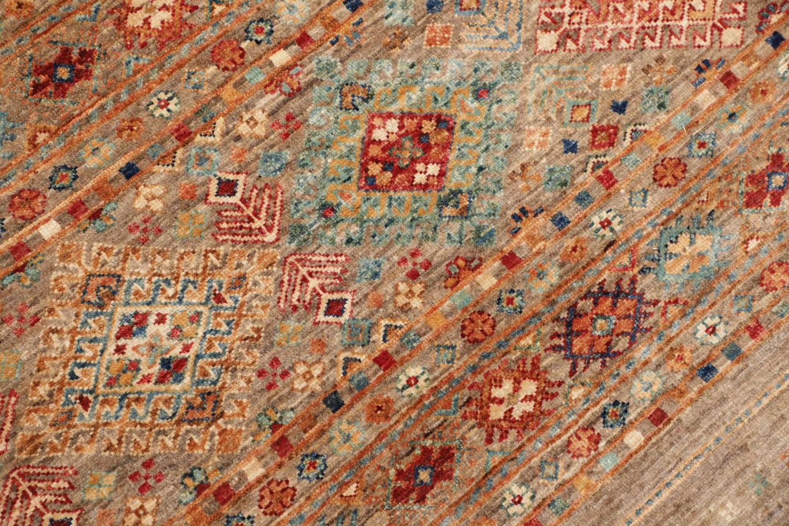 Dieser Teppich stammt aus der traditionsreichen Region Samarkand, die sich in Usbekistan befindet. Samarkand gilt als ein historisches Zentrum für Teppichknüpfkunst und hat eine lange Geschichte, die bis in die Antike zurückreicht. Diese Stadt war einst ein blühender Handelsplatz an der Seidenstraße, wo Händler Kunsthandwerk und Kultur austauschten. Teppiche aus dieser Region werden oft für ihre feinen Muster und lebendigen Farben geschätzt, die durch die geschickte Verarbeitung in den Werkstätten von Samarkand hervorgehoben werden.