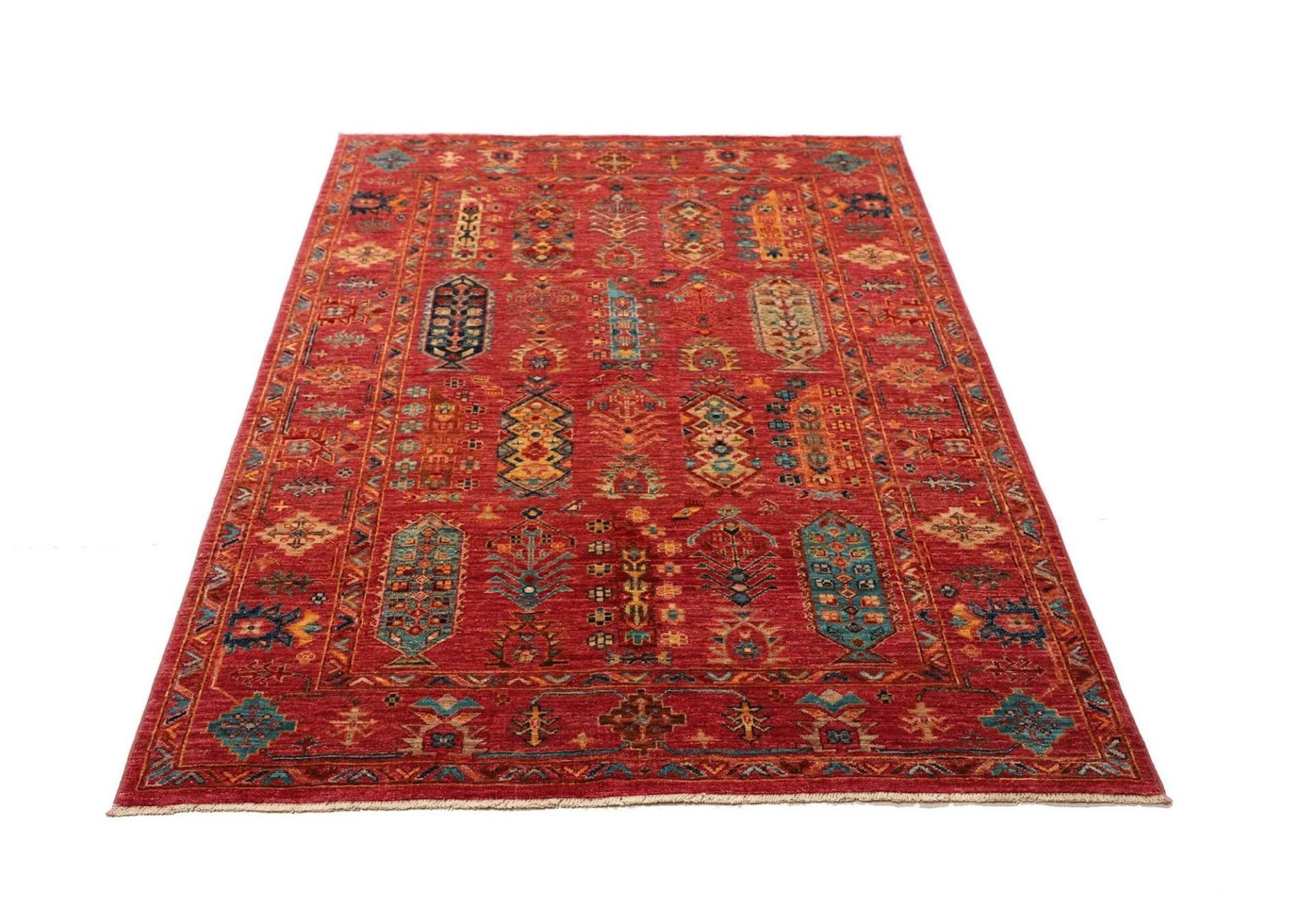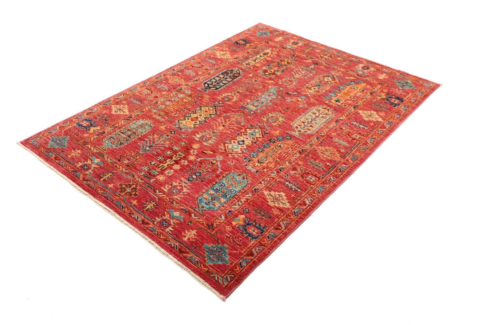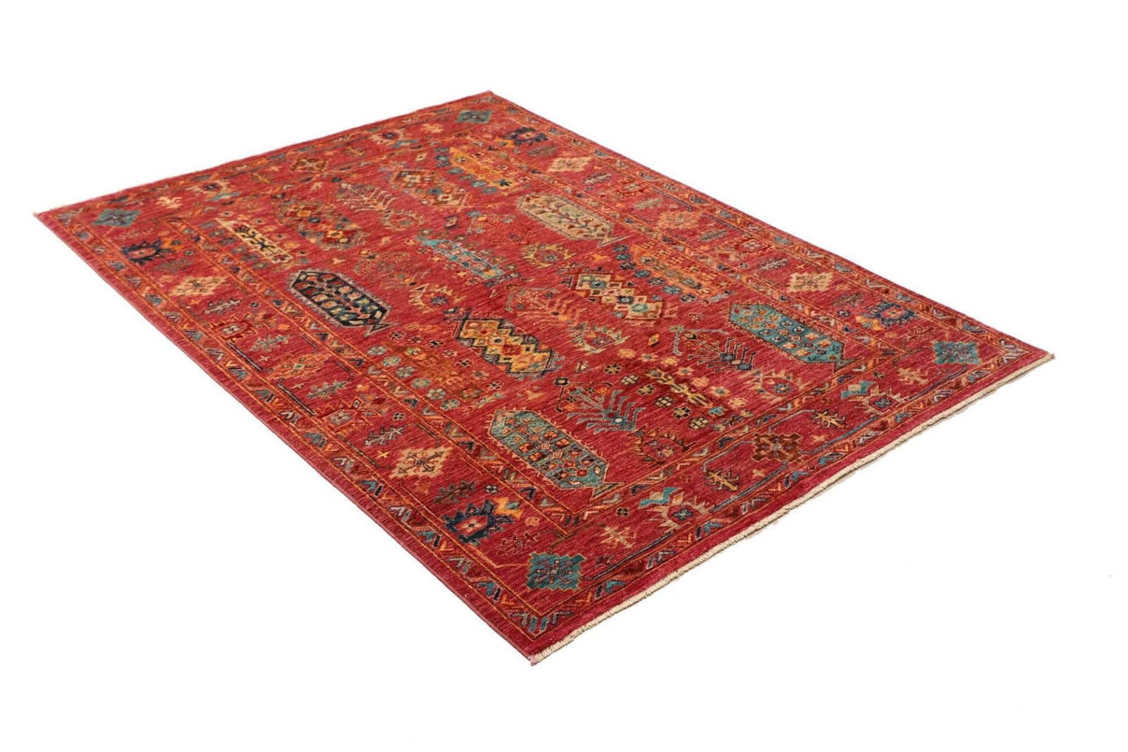 Handgeknüpfter Samarkand Teppich | Knotendichte: ca. 200.000 Knoten/m² | Material: 100% Schurwolle | Größe: 130 x 176 cm | Herkunft: Pakistan | Florhöhe: ca. 5-7 mm | Hohe Strapazierfähigkeit und Langlebigkeit | Farbenfrohes, modernes orientalisches Muster
