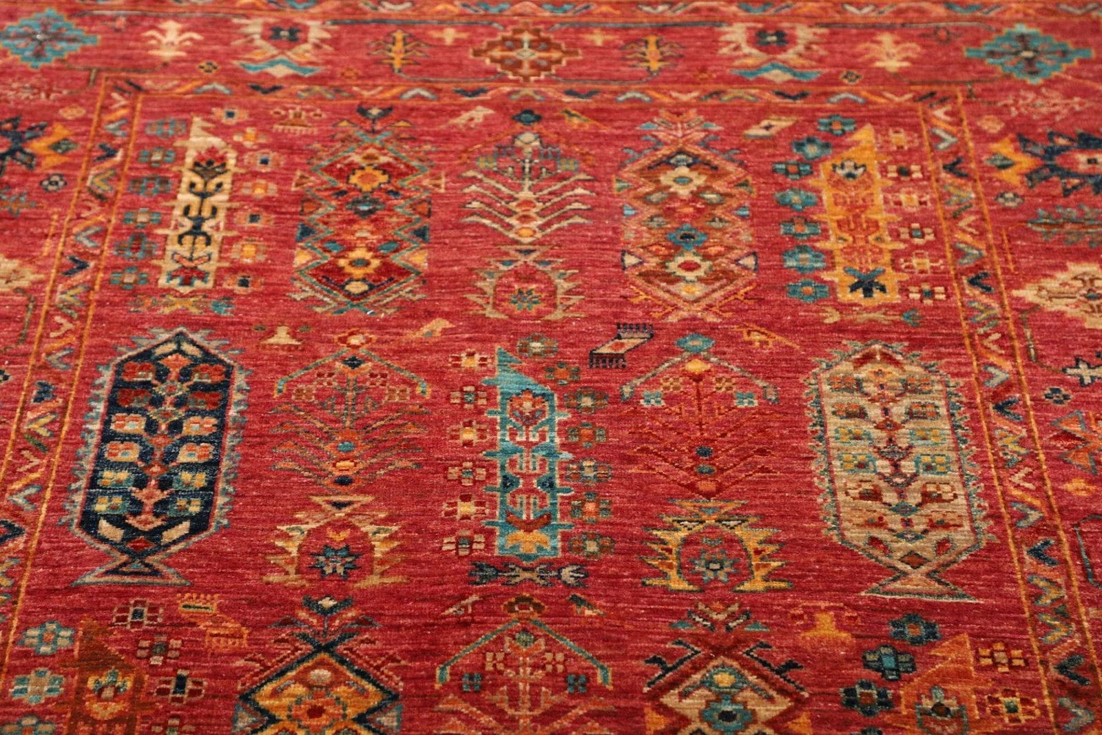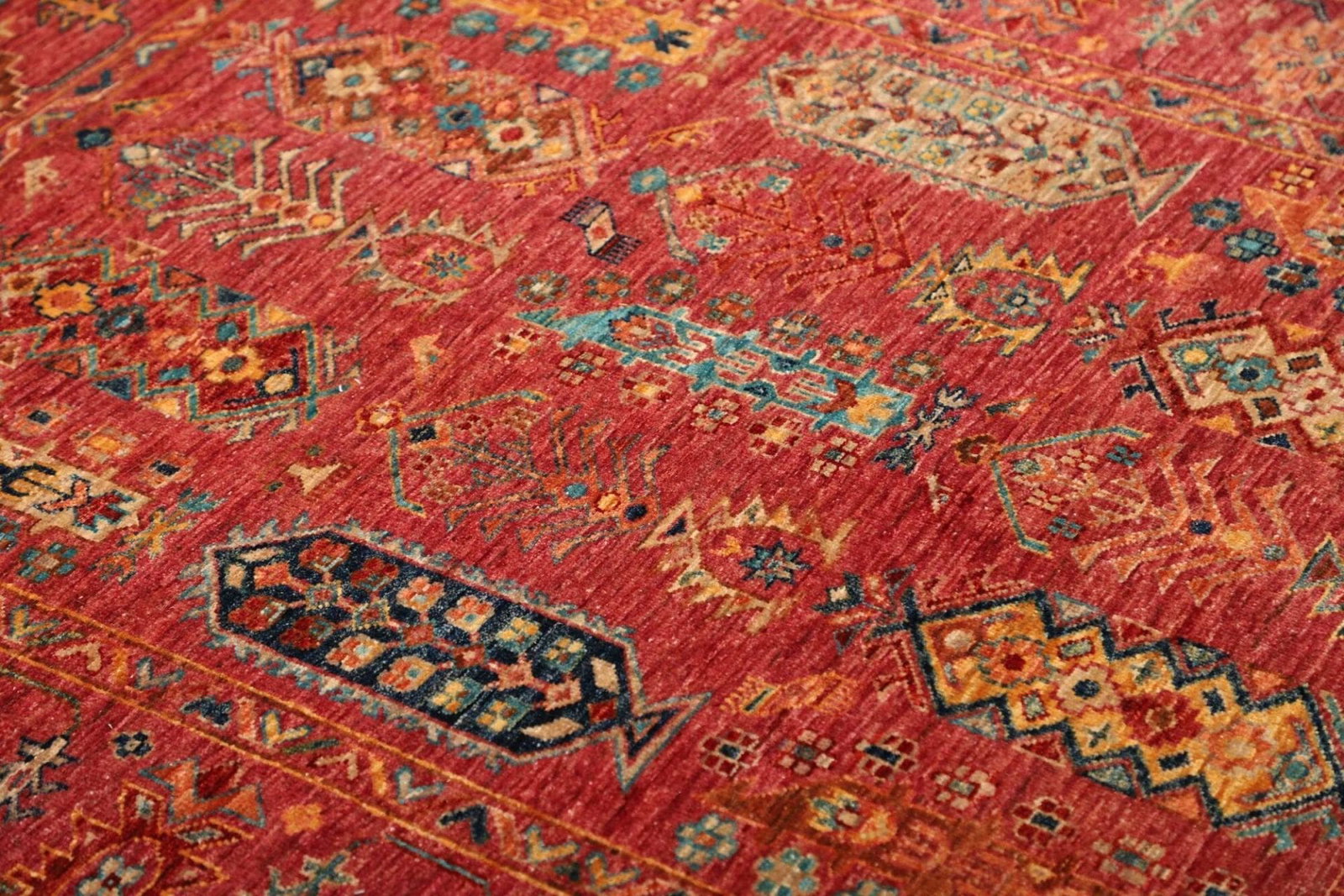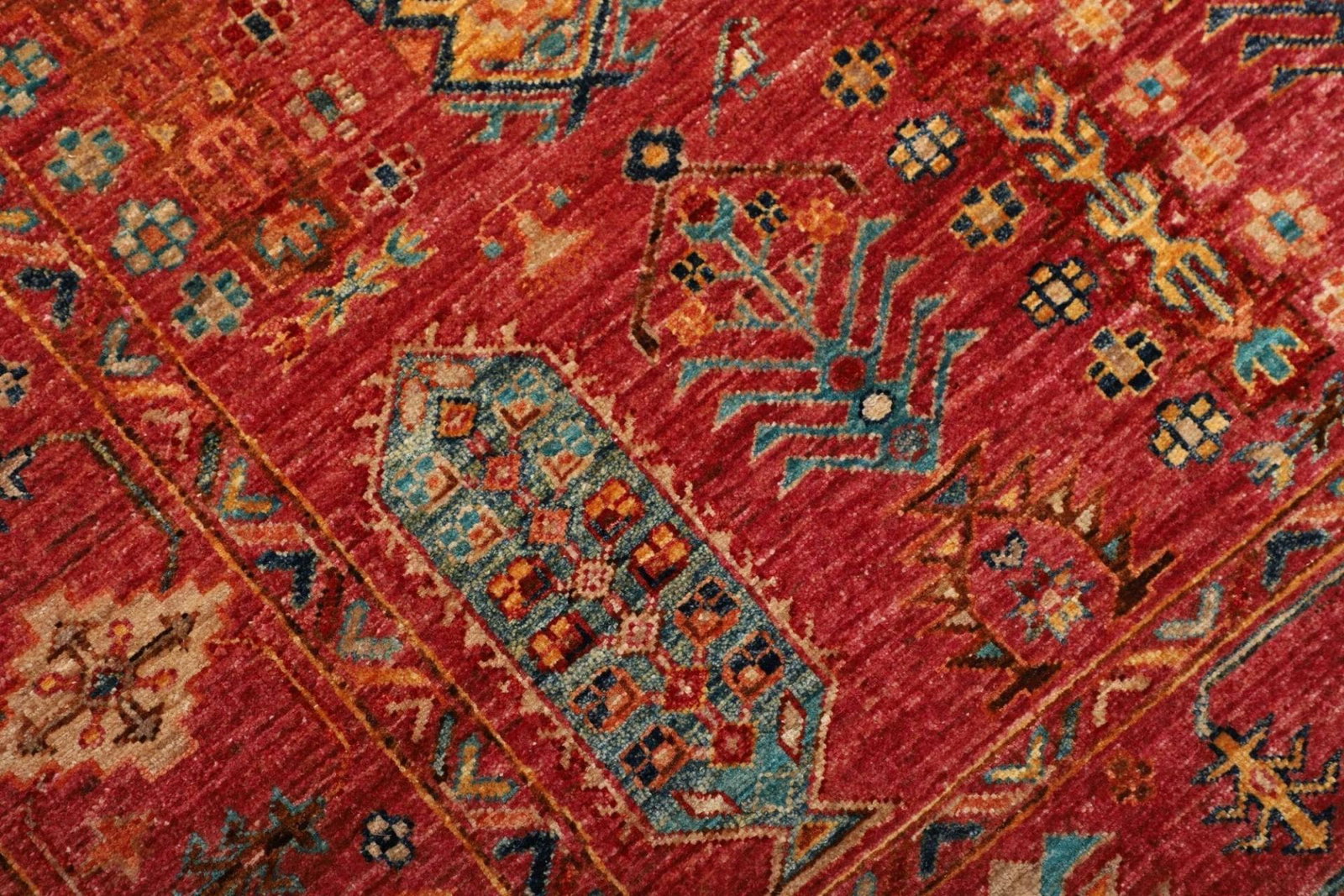 Handgeknüpfter Samarkand Teppich | Knotendichte: ca. 200.000 Knoten/m² | Material: 100% Schurwolle | Größe: 130 x 176 cm | Herkunft: Pakistan | Florhöhe: ca. 5-7 mm | Hohe Strapazierfähigkeit und Langlebigkeit | Farbenfrohes, modernes orientalisches Muster