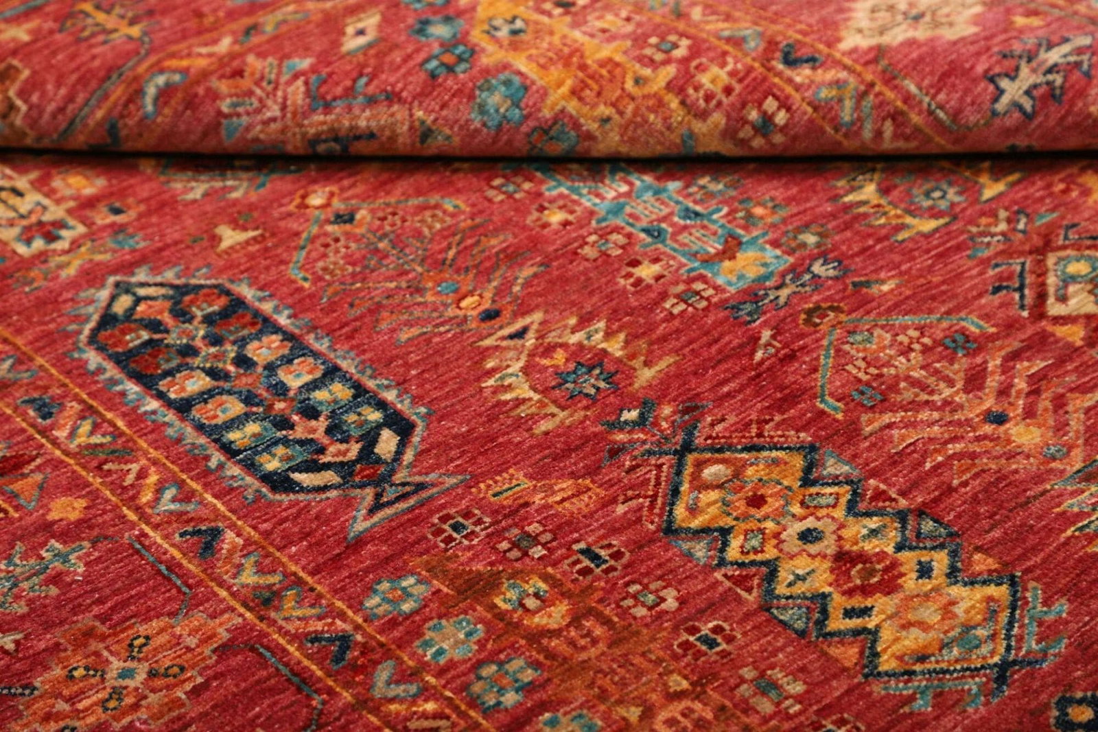 Die Tradition der Teppichknüpfung in dieser Region reicht Jahrhunderte zurück, und die Kunsthandwerker nutzen Techniken, die von Generation zu Generation weitergegeben werden. Jeder Teppich erzählt seine eigene Geschichte, die in den komplizierten Mustern und Symbolen verborgen ist. Oft spiegeln diese Designs die Geometrie und die Natur wider, was ihren zeitlosen Charakter ausmacht.