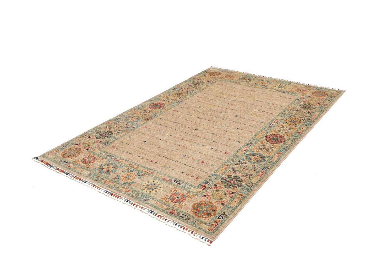 971$ In den WarenkorbOriginal Kashmir Teppich 191×123 cm – Florales Design mit Medallion und dekorierten Ecken, beige Bordüre, extra fein, handgeknüpft, Perserteppich