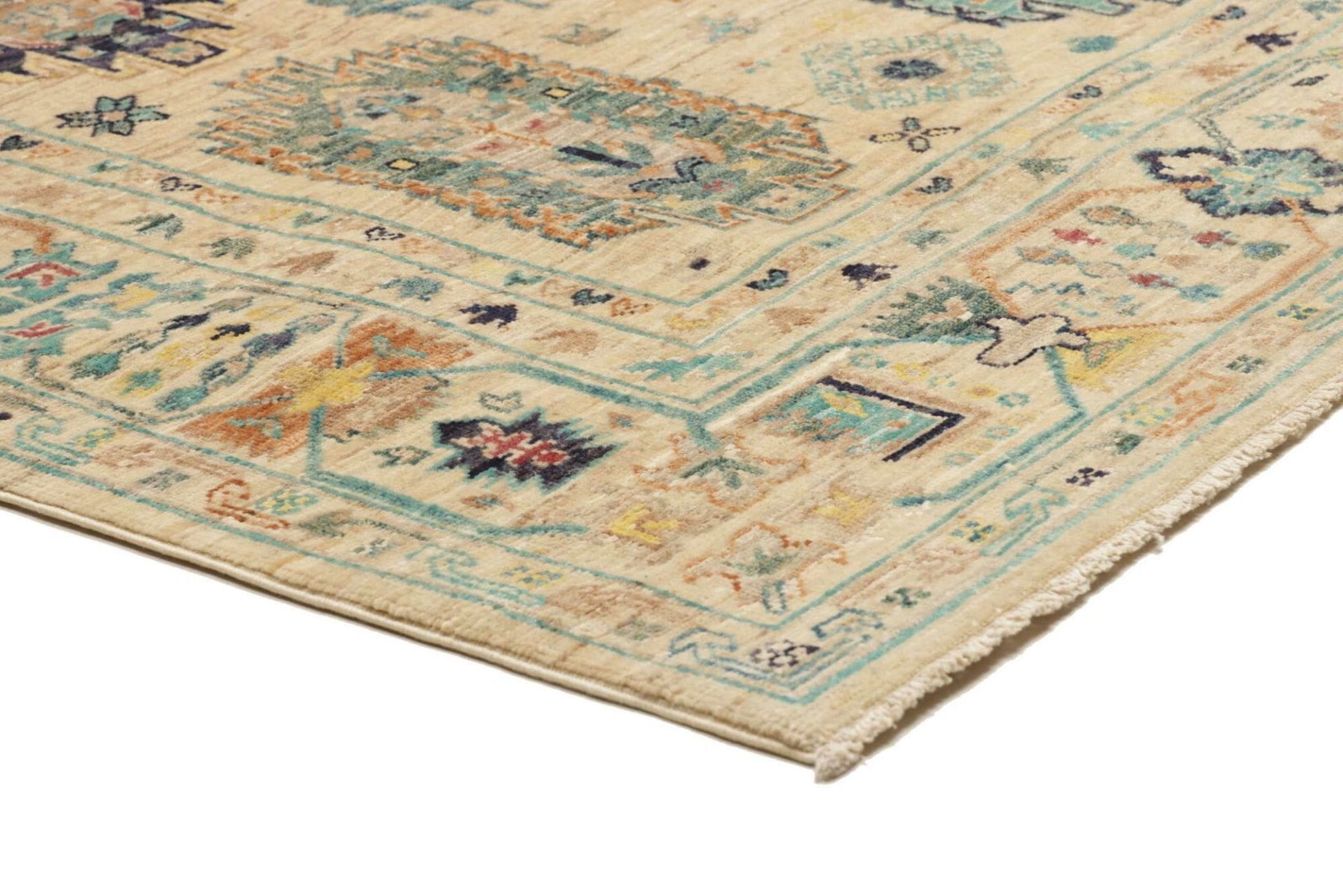 Ein weiteres Highlight dieses Teppichs ist die hohe Knotendichte, die dafür sorgt, dass die Muster schärfer und detaillierter zur Geltung kommen. Darüber hinaus ist jeder handgeknüpfte Teppich ein Unikat, das die individuelle Handwerkskunst des Teppichknüpfers widerspiegelt. Durch die Verwendung von natürlicher Wolle ist der Teppich nicht nur umweltfreundlich, sondern sorgt auch für eine angenehme Fußwärme und ein angenehmes Raumklima.