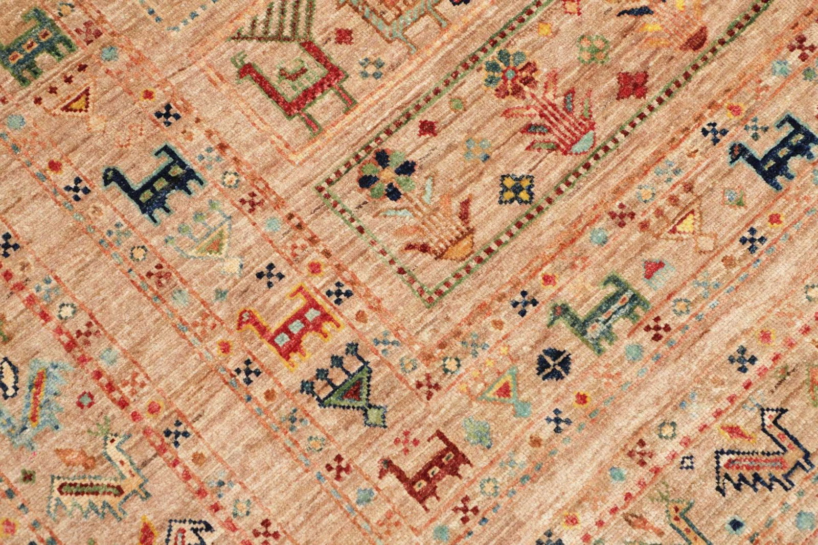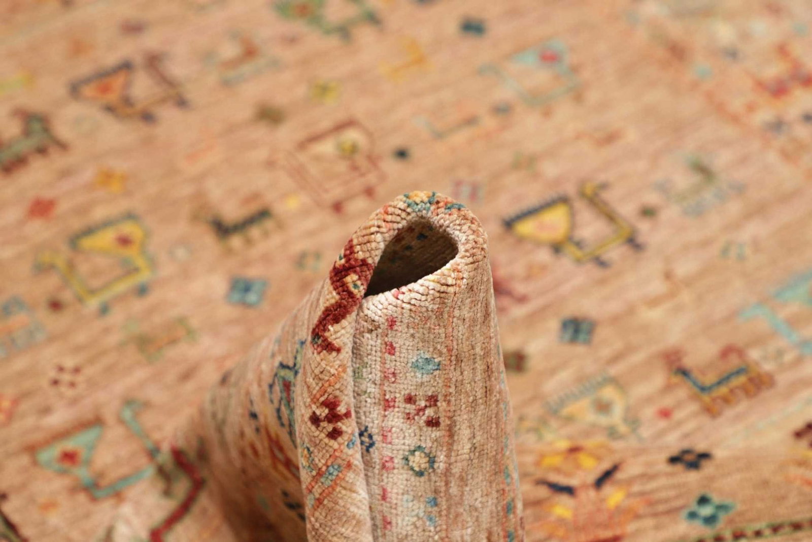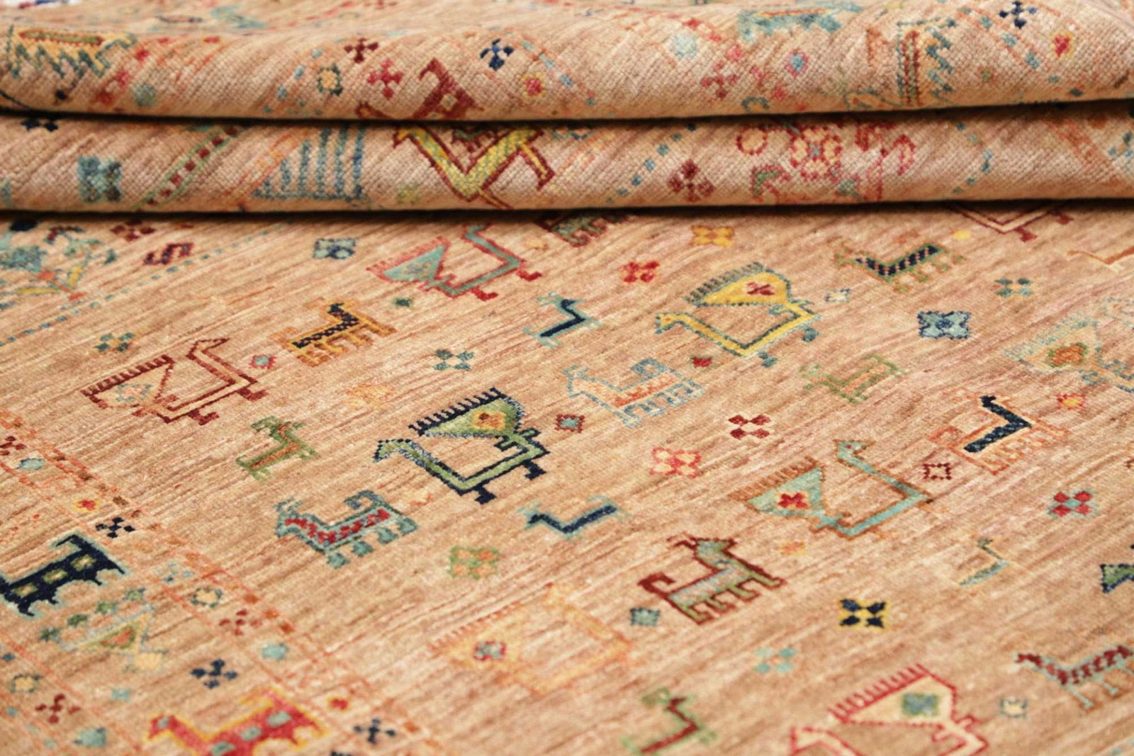 Der Orientteppich Samarkand wird ausschließlich aus Wolle gefertigt. Wolle ist bekannt für ihre Strapazierfähigkeit und ihre Fähigkeit, Wärme zu speichern, was diesen Teppich ideal für jede Jahreszeit macht. Zudem ist Wolle von Natur aus schmutzabweisend, was die Pflege und Reinigung erheblich erleichtert. Die charakteristische Weichheit der Wolle sorgt dafür, dass Barfußlaufen ein wahres Vergnügen ist.