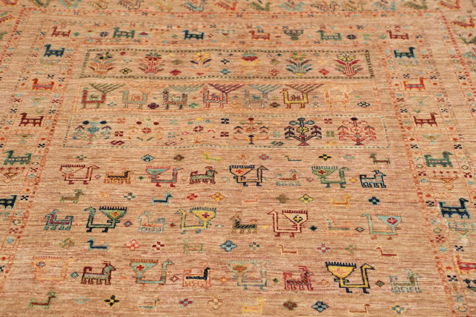 Künstler und Handwerker nutzen traditionelle Techniken, um die Teppiche zu gestalten und gleichzeitig den modernen Anforderungen gerecht zu werden. Die Farben werden aus natürlichen Farbstoffen gewonnen, was den Teppich nicht nur umweltfreundlich macht, sondern auch eine besondere Eleganz verleiht, die durch die Jahre hinweg erstrahlt.