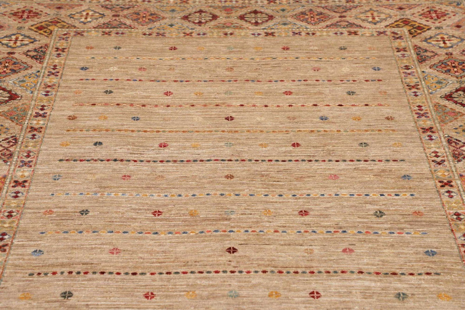 Samarkand Teppich | Knotendichte: ca. 200.000 Knoten/m² | Material: 100% Schurwolle | Größe: 170 x 236 cm | Herkunft: Pakistan | Zustand: Handgeknüpft | Florhöhe: ca. 5-7 mm