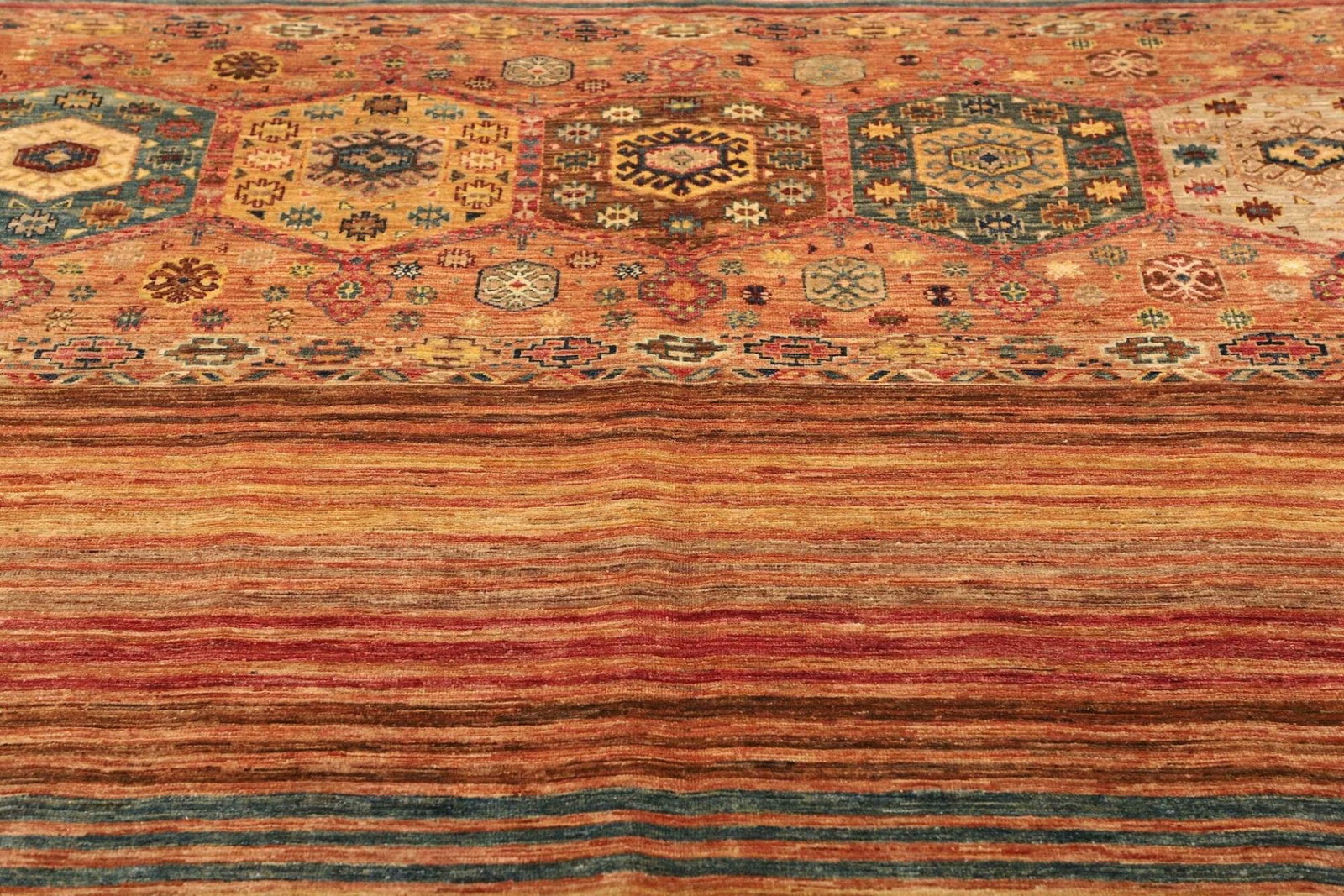 Die Verwendung von natürlichen Farbstoffen bei der Färbung der Wolle sorgt dafür, dass die Farben auch nach vielen Jahren nicht verblassen. Dies macht den Teppich nicht nur zu einem zeitlosen Einrichtungselement, sondern auch zu einem Investitionsobjekt, das Generationen überdauern kann.