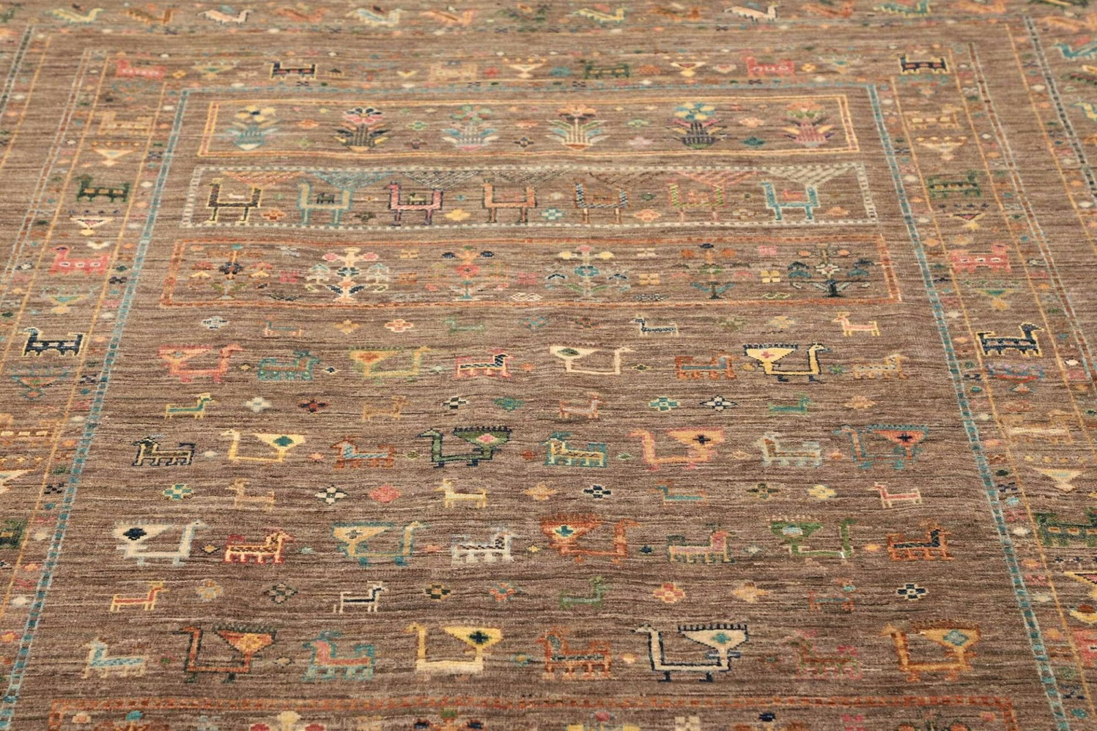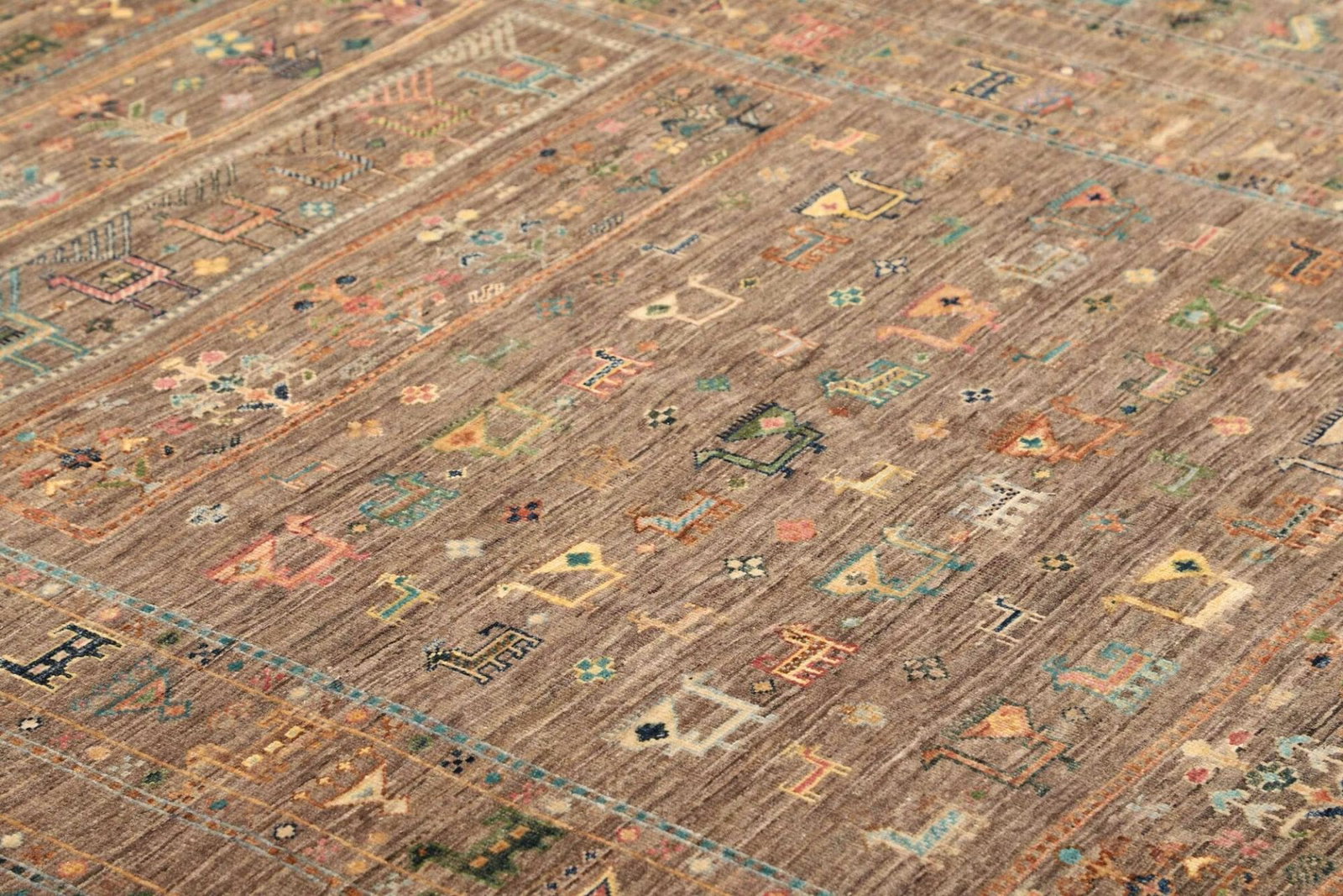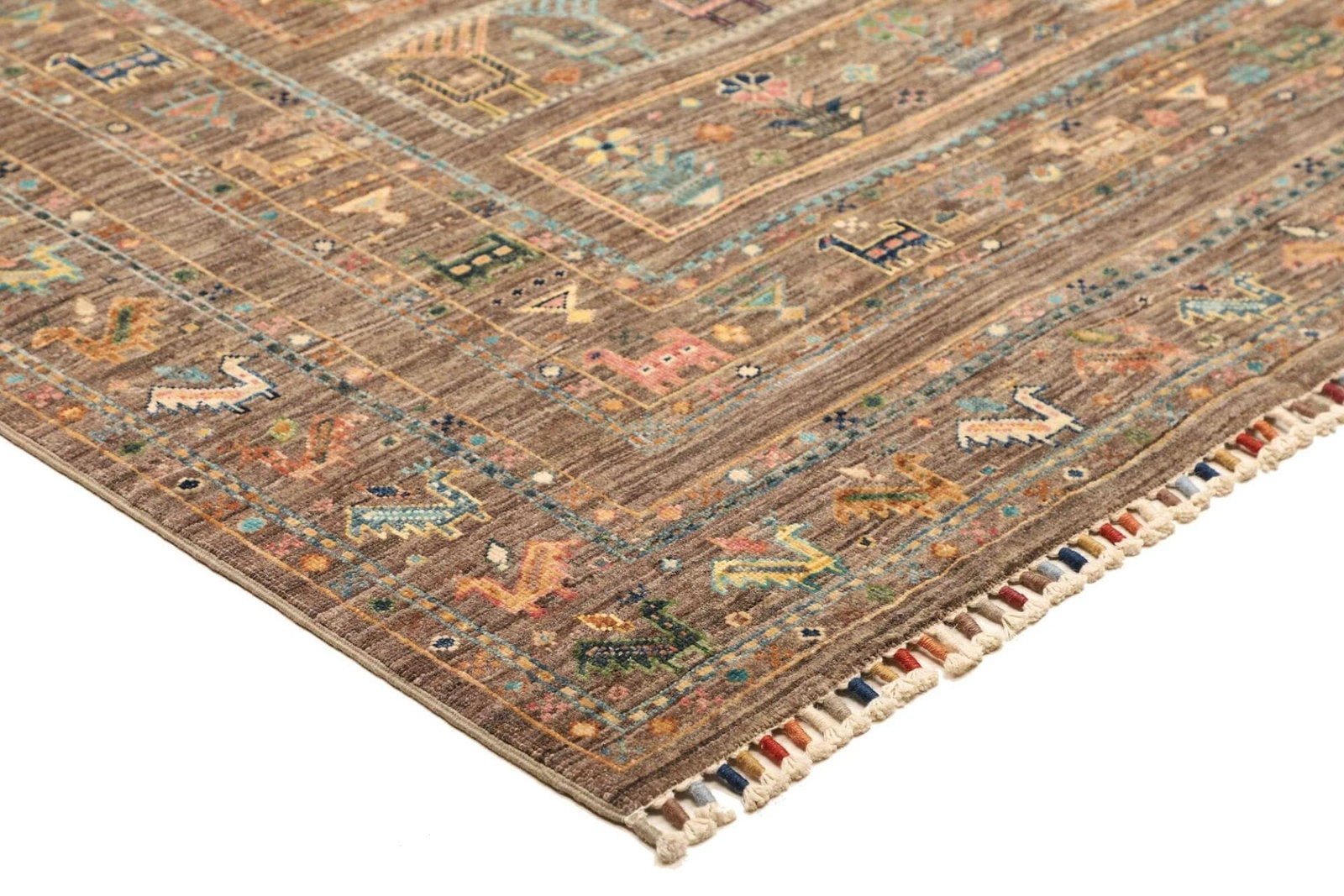 Dieser Teppich ist zu 100% aus hochwertiger Wolle gefertigt, die für ihre Langlebigkeit und Widerstandsfähigkeit geschätzt wird. Wolle hat natürliche Eigenschaften, die den Teppich warm und gemütlich machen, während sie gleichzeitig pflegeleicht ist. Die handgeknüpfte Technik sorgt dafür, dass jede Masche sorgfältig und präzise gearbeitet ist. Diese Methode stellt sicher, dass der Teppich nicht nur ästhetisch ansprechend ist, sondern auch über Jahre hinweg seinen Charme sowie seine Funktionalität behält. Die Knotendichte ist ein weiteres Merkmal, das die Qualität dieses Teppichs hervorhebt; eine hohe Knotendichte ist ein Indikator für die Sorgfalt und die handwerklichen Fähigkeiten, die in die Herstellung des Teppichs eingeflossen sind.