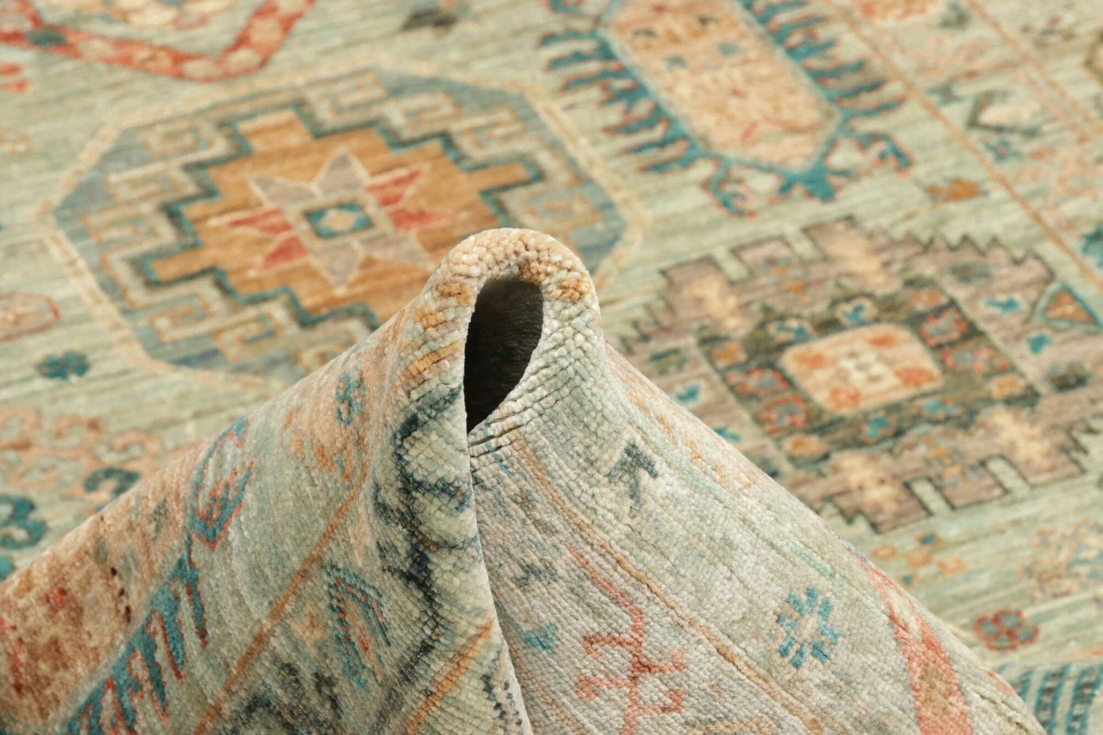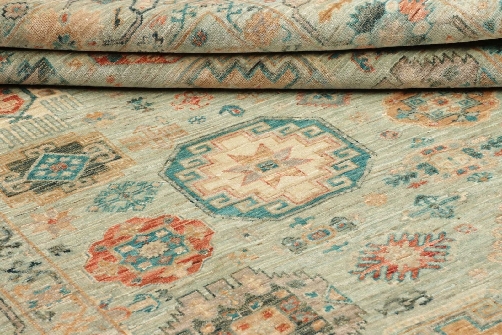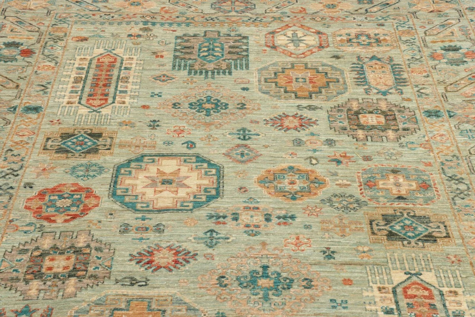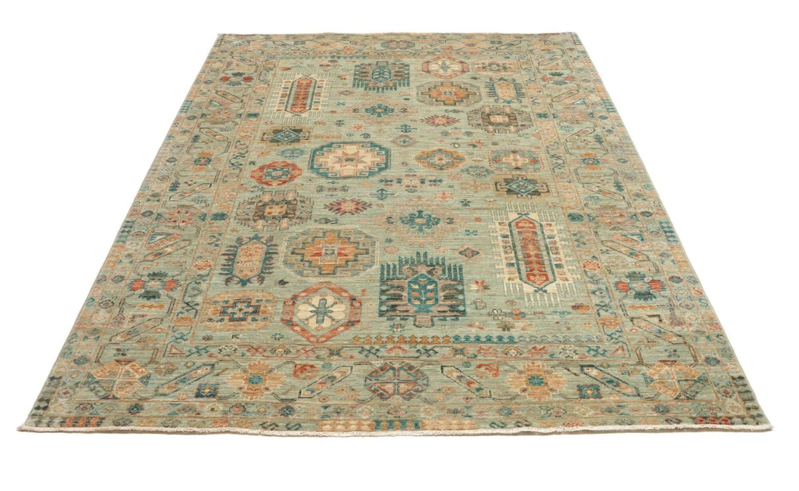 4338$Ursprünglicher Preis war: 4338$3459$Aktueller Preis ist: 3459$Samarkand Tribal Teppich | Knotendichte: 200.000 Knoten/m² | Material: 100% Schurwolle und 100% Baumwolle | Größe: 175×236 cm | Herkunft: Pakistan | Zustand: Handgeknüpft und sehr gut verarbeitet | Höheneffekt: 5-7 mm Florhöhe | Modernes, farbenfrohes Muster