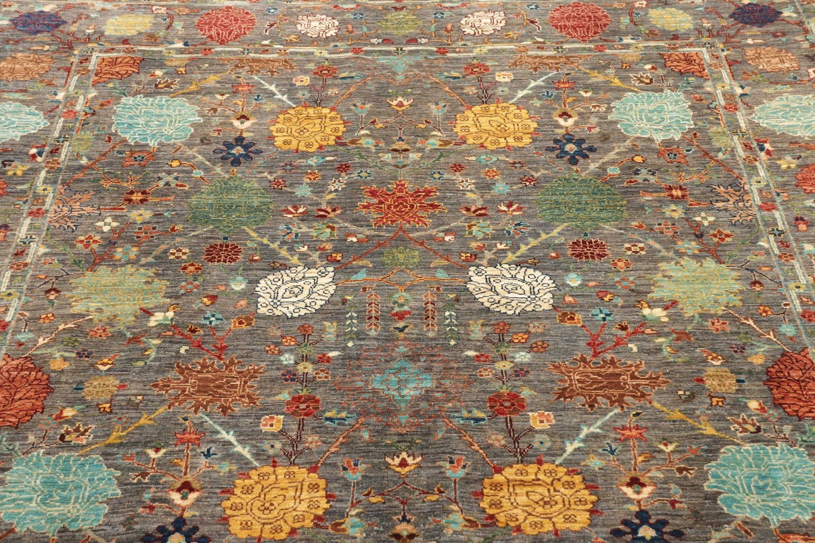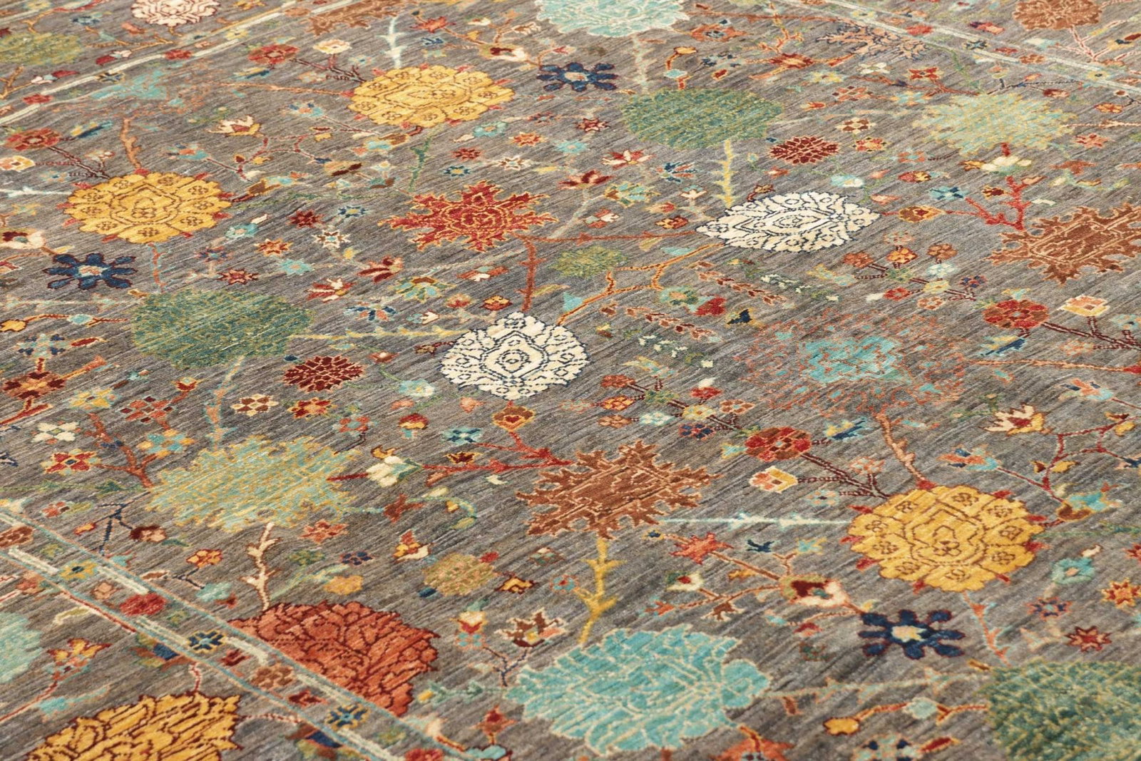 1556$ In den WarenkorbNEU Bezaubernder handgeknüpfter Orientteppich in Blau mit floralem Muster von Arijana Ziegler, 309×264 cm