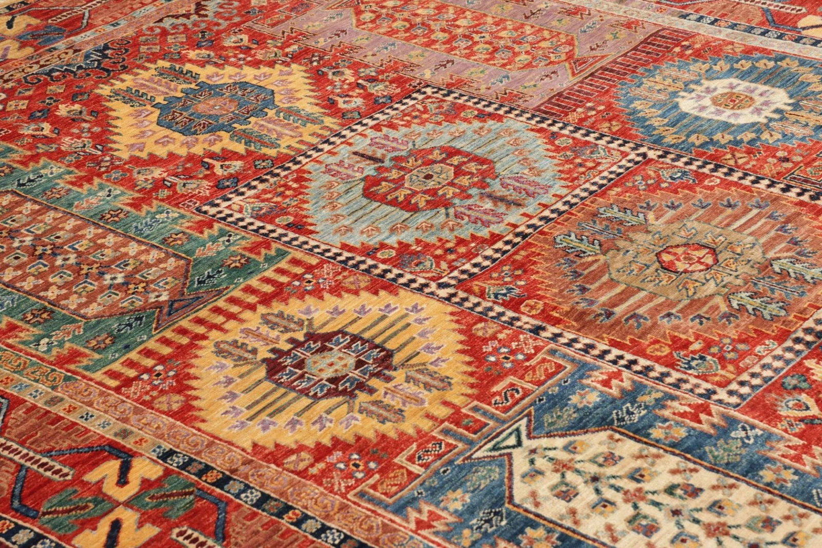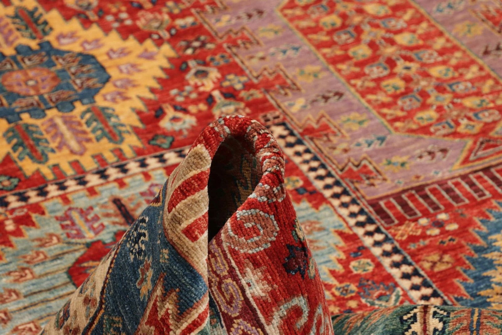 Die überragende Knotendichte dieses Teppichs gewährleistet ein detailliertes Design und verleiht ihm eine angenehme Haptik. Jeder Teppich wird nach individuellen Vorgaben und in einem aufwendigen Prozess handgeknüpft, was ihm einen einzigartigen Charakter verleiht. Die bunten Farben des Teppichs kommen durch die sorgfältige Färbung der Wolle zustande und sorgen für ein lebendiges Erscheinungsbild, das perfekt in moderne wie auch klassische Wohnräume passt.