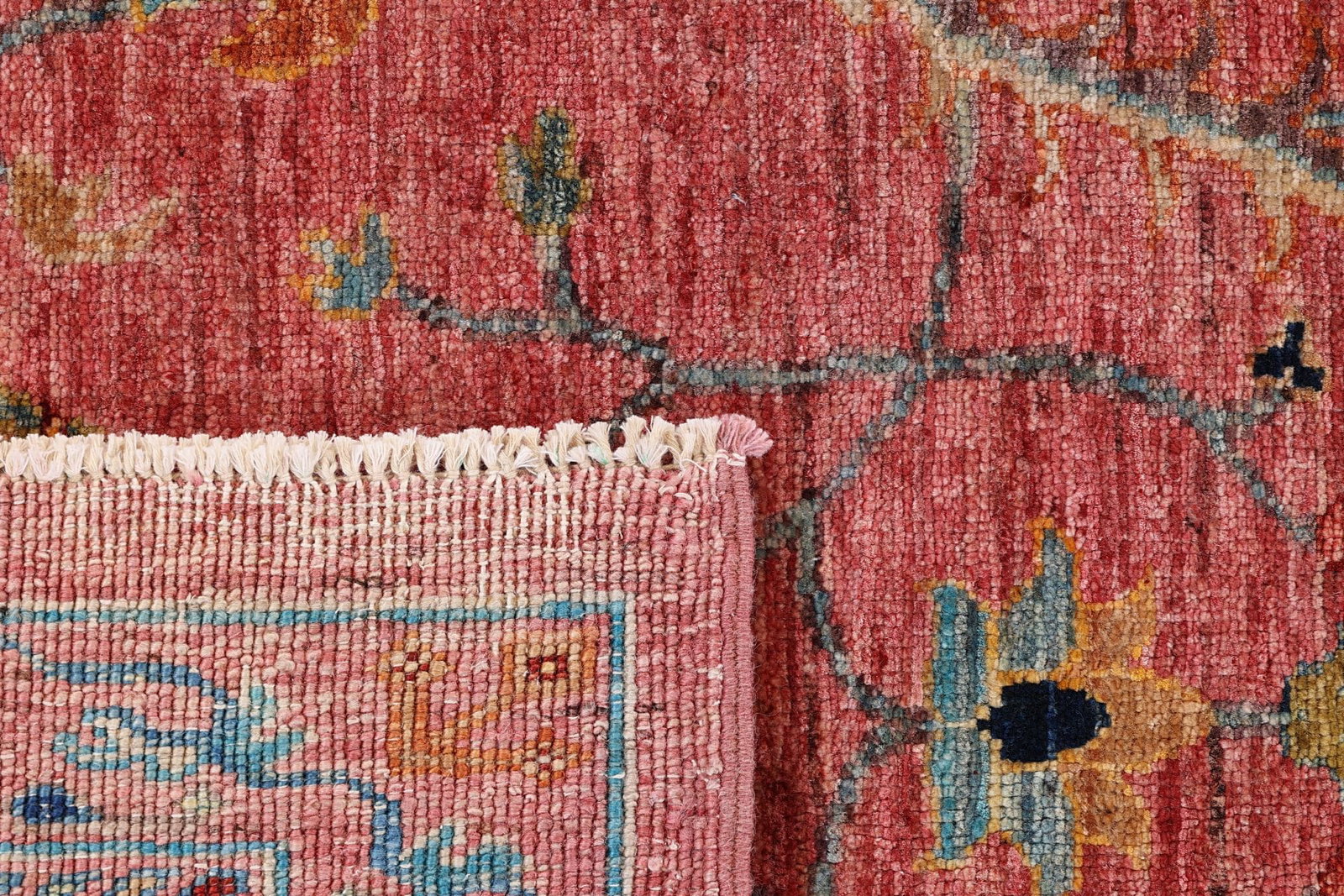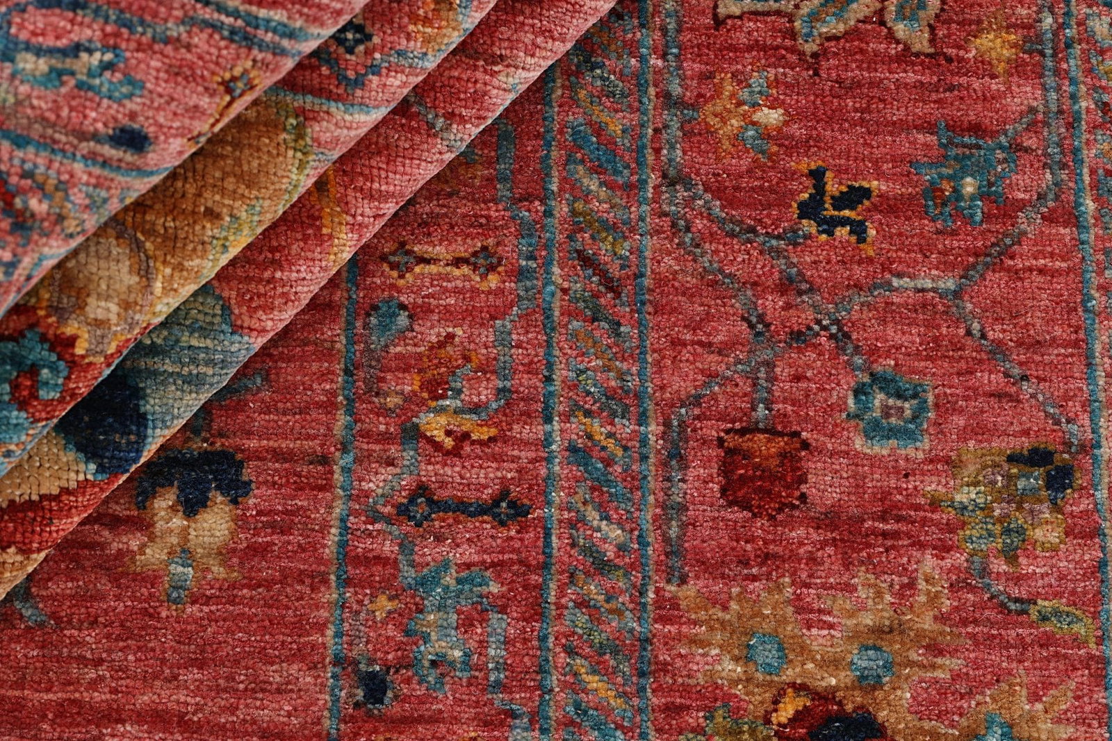 Jedes Knoten wird mit großer Sorgfalt gesetzt, was eine hohe Knotendichte bedeutet. Diese Dichte ist entscheidend für die Langlebigkeit und das Aussehen des Teppichs, da sie die Farbkraft und die Details der Muster intensiver zur Geltung bringt.