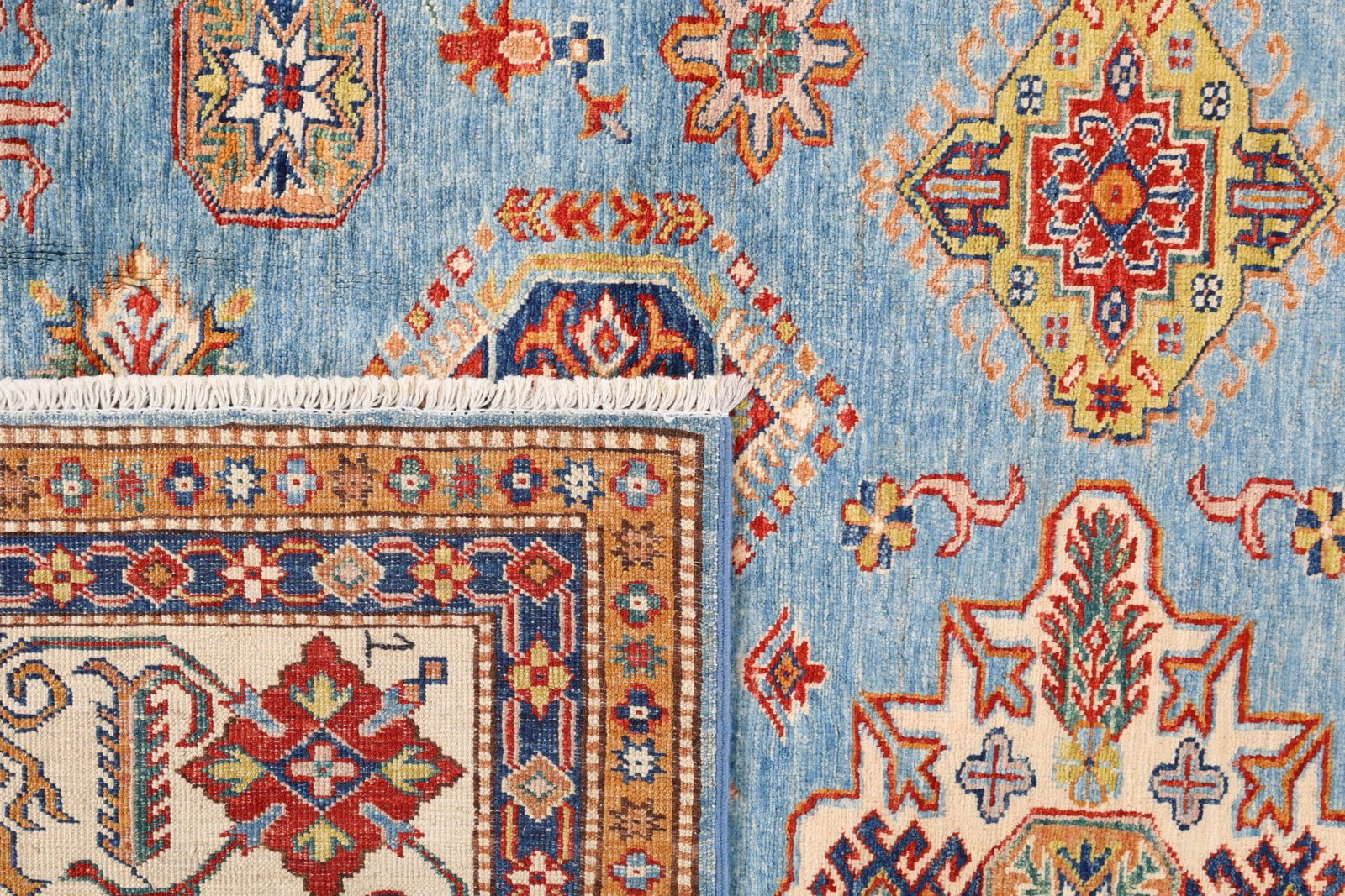 Die Verwendung von Wolle macht diesen Teppich besonders langlebig und gleichzeitig angenehm weich. Wolle hat eine natürliche Fähigkeit, Wärme zu speichern und dabei feuchtigkeitsregulierend zu wirken, was den Teppich sowohl für den Wohnbereich als auch für das Schlafzimmer zur idealen Wahl macht. Darüber hinaus überzeugt die hohe Knotendichte, die in jeder handgeknüpften Faser steckt, mit einer robusten und dennoch eleganten Optik, die selbst die intensivsten Farben lebendig erscheinen lässt.