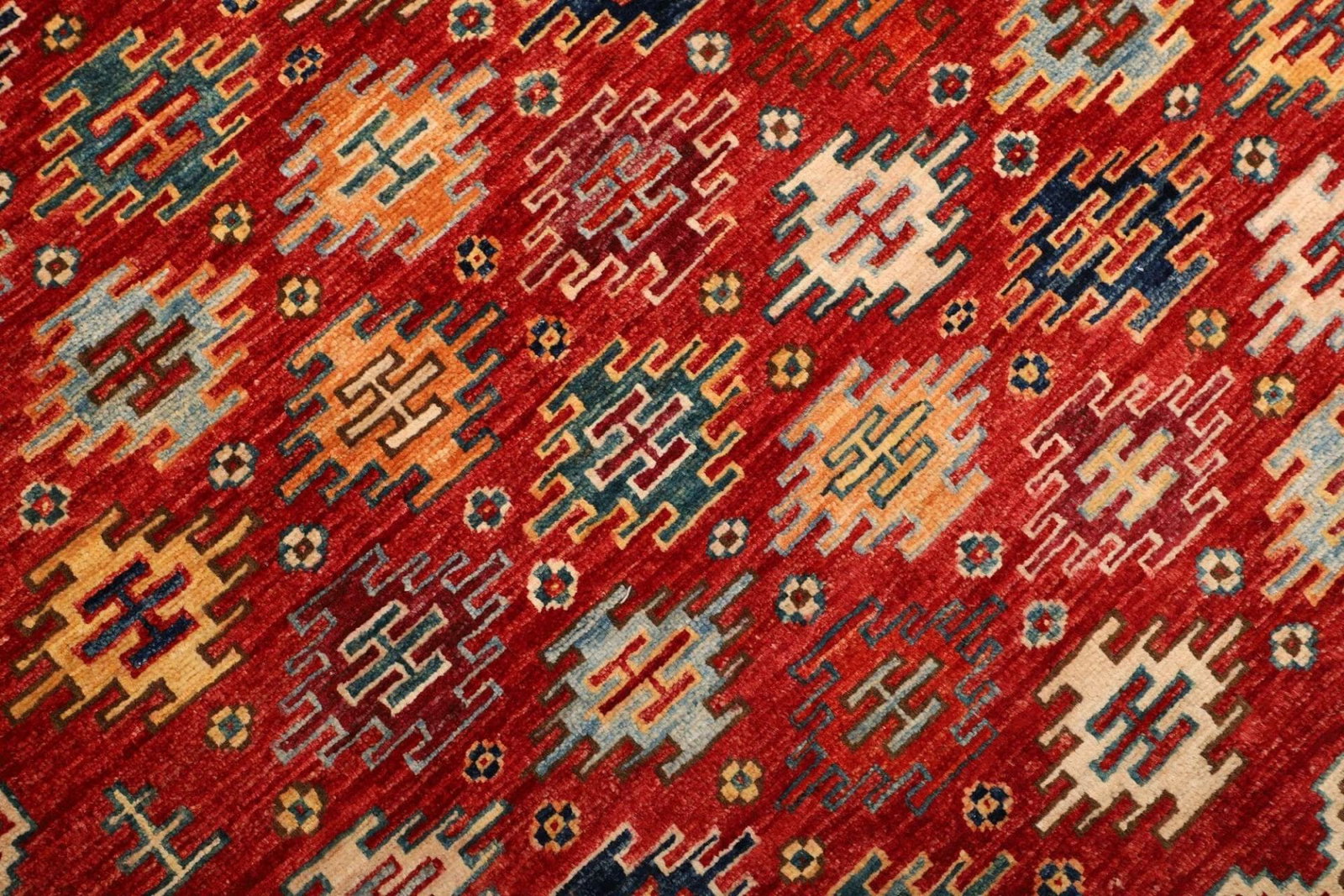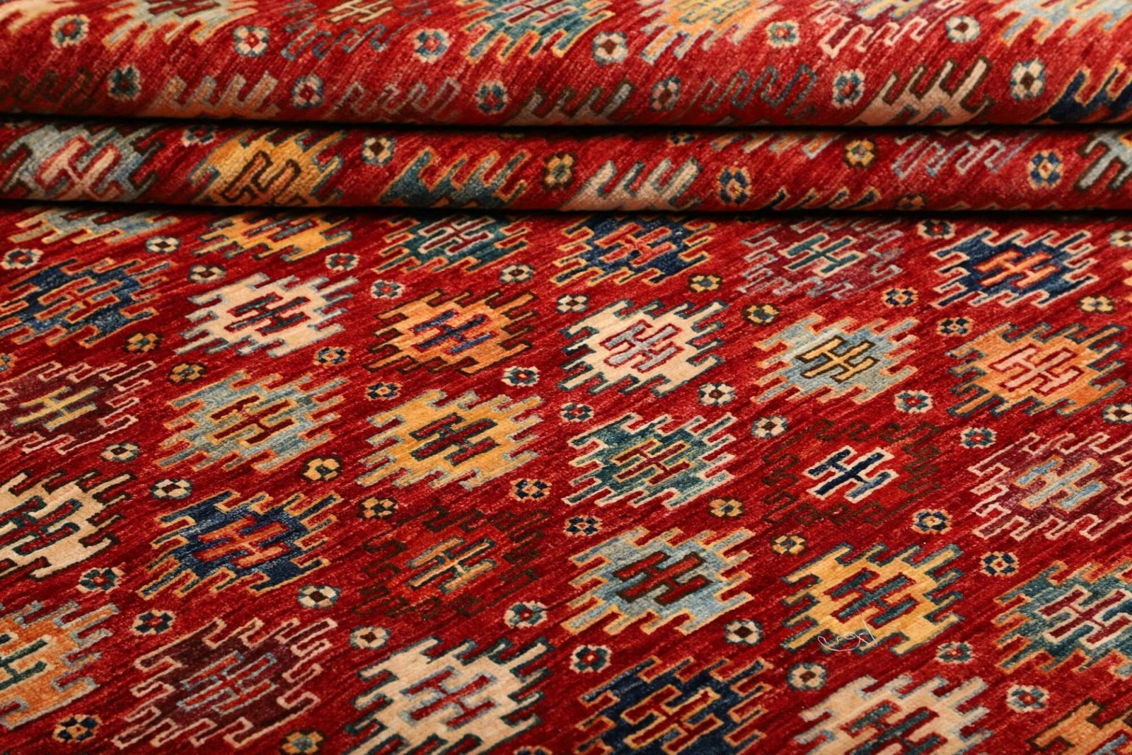 Eine der herausragenden Eigenschaften des Orientteppichs Samarkand ist das verwendete Material. Die Wolle stammt von Schafen, die in kühlen Regionen leben, was zu einer feinen und dichten Faserstruktur führt. Dies ist entscheidend für die Haltbarkeit und die Pflegeleichtigkeit des Teppichs. Die handgeknüpfte Technik ist ein weiterer Beweis für die hohe Qualität – jeder Knüpfpunkt wird mit Sorgfalt ausgeführt, was sich in der überlegenen Knotendichte äußert. Diese Knotendichte sorgt nicht nur für Stabilität und Robustheit, sondern stellt auch sicher, dass die Farben und Muster in ihrer vollen Pracht zur Geltung kommen.