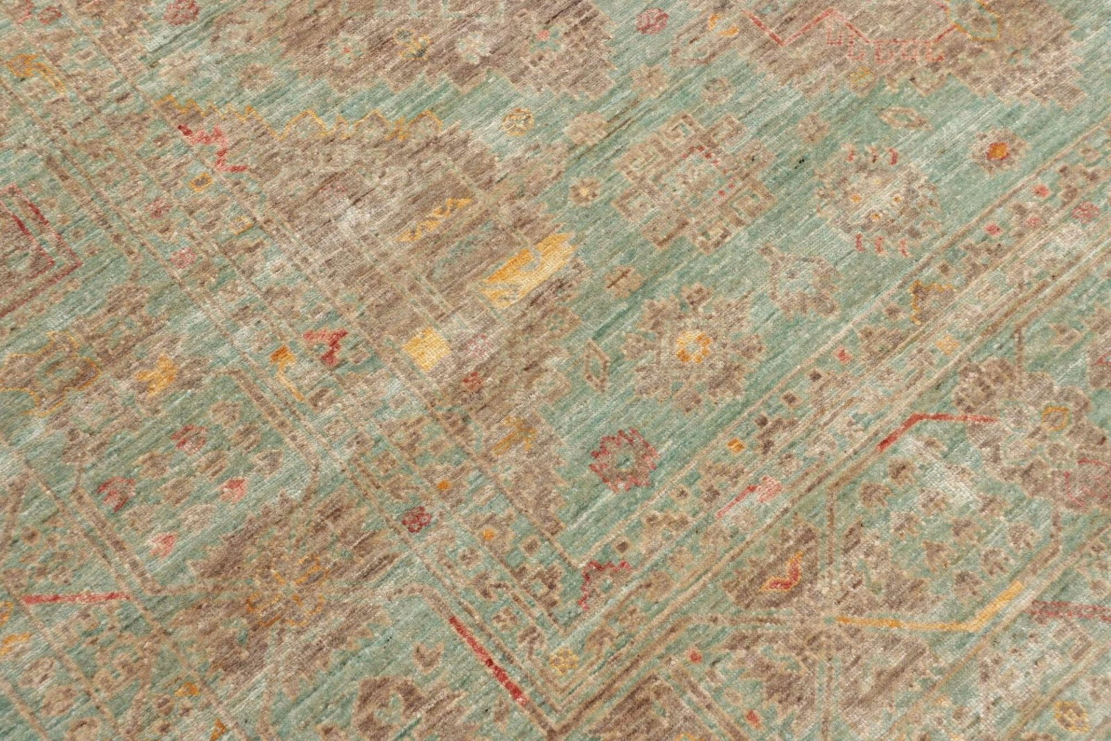 Die Verwendung von reiner Schurwolle sorgt für eine unübertroffene Weichheit und Strapazierfähigkeit. Schurwolle hat hervorragende Eigenschaften: Sie ist schmutzabweisend, temperaturausgleichend und bietet eine natürliche Robustheit. Die handgeknüpfte Verarbeitung garantiert, dass jeder Teppich ein Unikat ist, das mit größter Sorgfalt und Aufmerksamkeit für Details gefertigt wurde. Diese Art der Herstellung erfordert nicht nur viel Geschick, sondern auch eine tiefverwurzelte Tradition, die bei jedem einzelnen Knoten spürbar ist.
