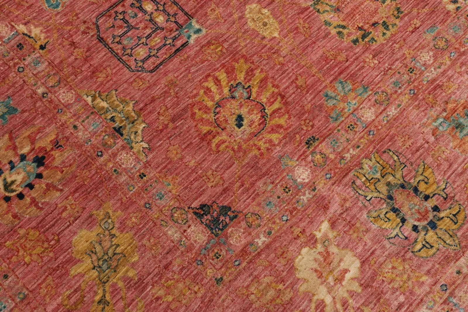 Ein solch handgeknüpfter Teppich erfordert mehr Zeit und Handarbeit als maschinell gefertigte Exemplare, was sich auch im Fingerabdruck der Kunstfertigkeit widerspiegelt. Jedes Stück erzählt eine eigene Geschichte, die von der Region und den Materialien geprägt wird.